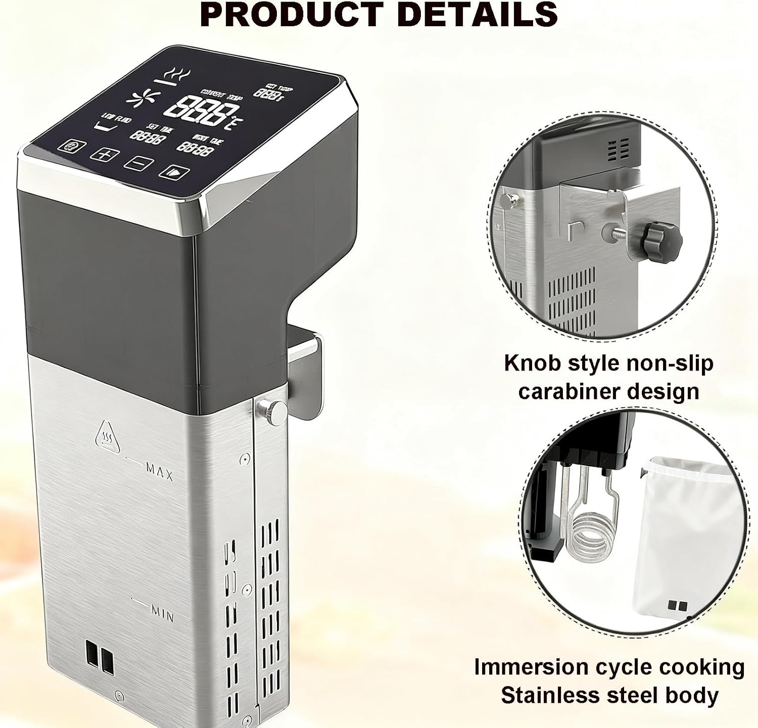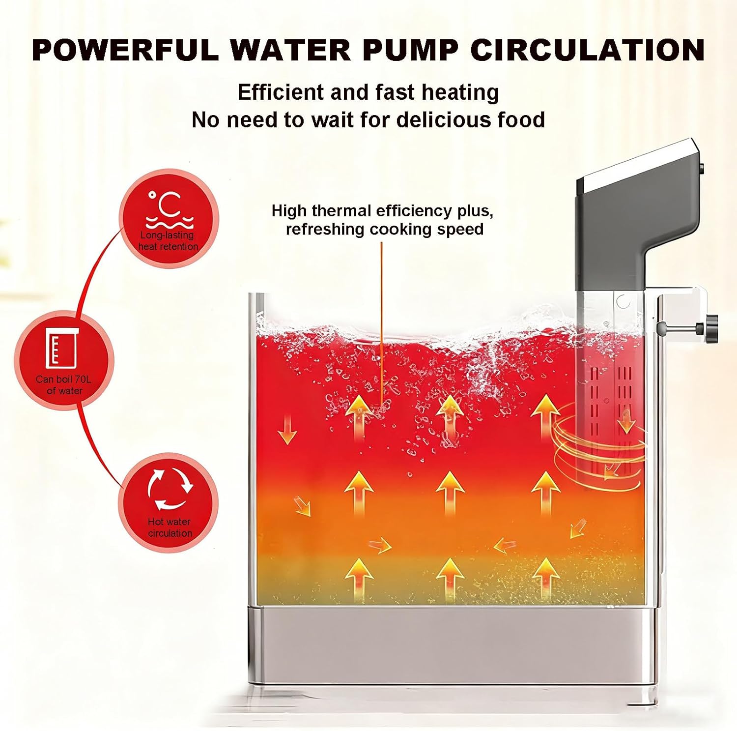 Are you struggling with the inconsistent temperature fluctuations of traditional cooking equipment? This can make it challenging to achieve the precise core temperature needed for slow cooking, especially when following professional recipes. If you're also facing issues with insufficient power leading to slow heating, resulting in inefficiencies during busy times like hotel peak hours or family banquets, we have the perfect solution for you. Introducing our commercial-grade low-temperature slow cooker, specifically designed to tackle these common challenges in both professional and home cooking environments. With its precise temperature control, high efficiency, large capacity, and ultra-quiet operation, this sous vide machine ensures that every slow-cooked dish is consistently outstanding. **Key Advantages:** 1. **High-Power Performance:** With 1600W of power, experience rapid heating that saves you valuable time in the kitchen. 2. **Precision Temperature Control:** Enjoy the benefits of ±0.1°C temperature accuracy, allowing you to master the art of sous vide cooking. 3. **Generous Capacity:** The large 70L capacity is perfect for preparing meals for gatherings or large batches. 4. **Whisper-Quiet Operation:** Create a serene cooking environment with ultra-quiet functionality, ideal for any setting. 5. **User-Friendly Display:** The LED LCD display provides clear visibility for monitoring your cooking process, while the 360° constant temperature 3D water circulation ensures even heat distribution. 6. **Dedicated After-Sales Service:** We prioritize your satisfaction and are committed to providing efficient and caring after-sales support. If you have any concerns, please feel free to reach out to us for assistance. **Specifications:** - Name: Vacuum Slow Cooker - Voltage: 110/220V - Power: 1600W - Waterproof Level: IPX8 - Heating Capacity: 70L - Timing Range: Up to 100 hours - Material: Stainless Steel - Temperature Range: 0-99°C - Water Circulation: 25 (+15...