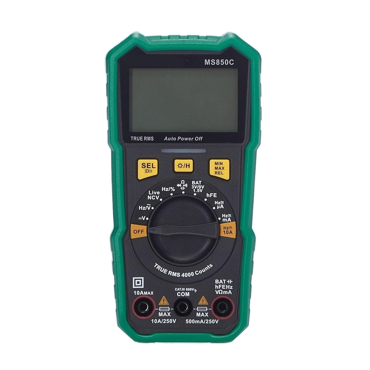 Ammeters1pc Multimeter MS850C Tester Digital Multimeter 2000 Counts Auto Ranging AC/DC Voltage Temperature Measuringproduct information- Accessories: Test leads, Manual- Dimension:150mm*75mm*47mm- Weight:284gAccessoriesTest leadsManual1.5V*2 AAA Battery( not include)Measuring Capacitance Range : 60nF,600nF, 6uF, 60uF, 600uF,6mF, 60mF, 100mFOperating Temperature : 0 - 50 Measuring Resistance Range : 400, 4K, 40K, 400K, 4M,40MModel Number : MS850CDimensions : 16*11*5.5DC Current : 400uA, 4000uA, 40mA,400mA,4A, 10AAC Current : 400uA, 4000uA, 40mA,400mA,4A, 10AAC Voltage : 400mV, 4V, 40V, 400V, 600VDC Voltage : 400mV, 4V,40V, 400V,600VDisplay Type : Digital display