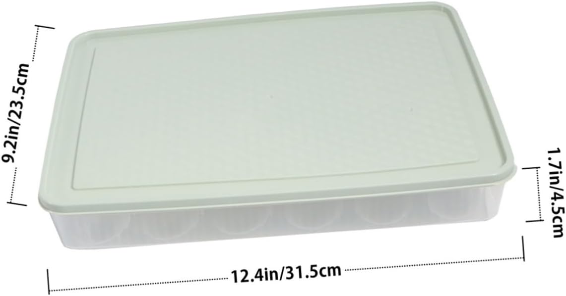 Package Include 2 x egg holderFeatures - Color: Random Color egg storage box.- Material: PP egg tray.- Size: About 31.5x23.5x6cm/12.4x9.25x2.36 inch.- Suitable for home, kitchen, refrigerator, etc egg container.- With lid design, it can keep eggs fresh and fully protect food nutrition plastic egg holder.- It can hold up to 24 eggs and meet your daily needs egg holder.- It can effectively keep the eggs safe and save more storage space.- Transparent design makes it perfect for storing eggs since you can notice the condition timely.Goods Descriptionegg container It is a large egg container, which can perfectly meet your daily needs.clear container This item is an egg holder, which is made of material, safe and durable to use.egg rack for refrigerator The egg container can not only store your eggs safely, but also keep them fresh and fully protect food nutritionre-usable