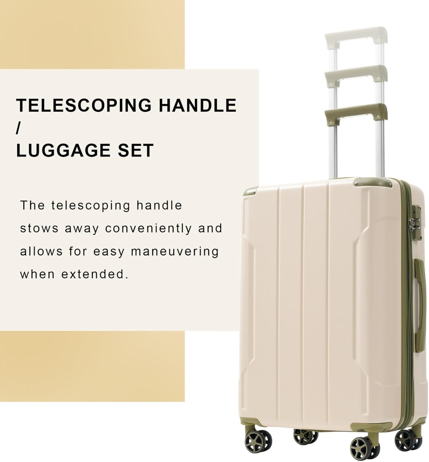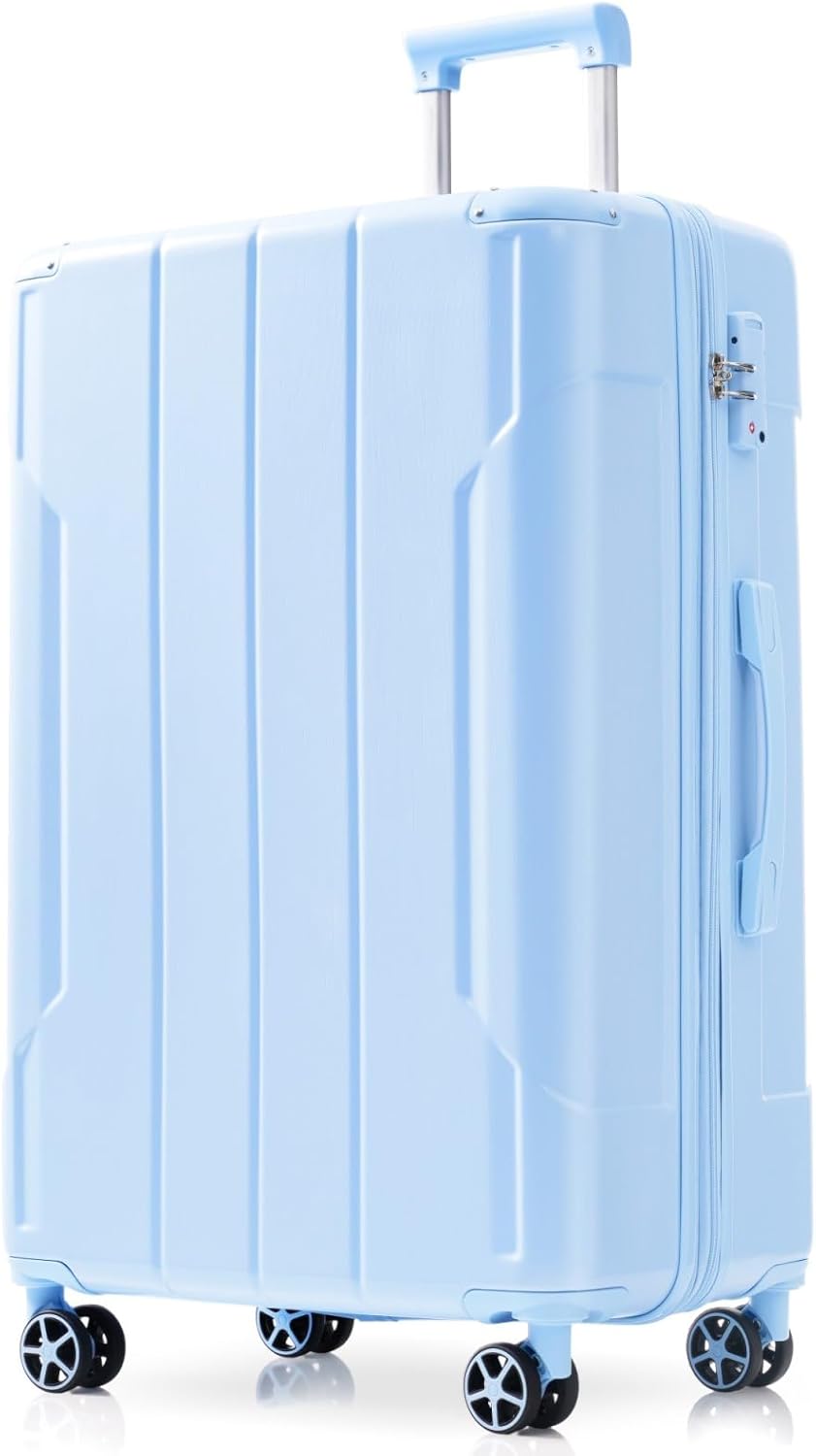 The 24/28 inch hardshell luggage, superior quality, silent-running, multi-directional silent spinner wheels assure smooth maneuverability and bring comfort to your journey. The ABS material company with the reinforced metal corner, making the entire suitcase more durable. Large storage space and fully lined interior with zippered compartment to organize your belongings. The 3-level adjustable handle to meet the needs of users of different heights.
