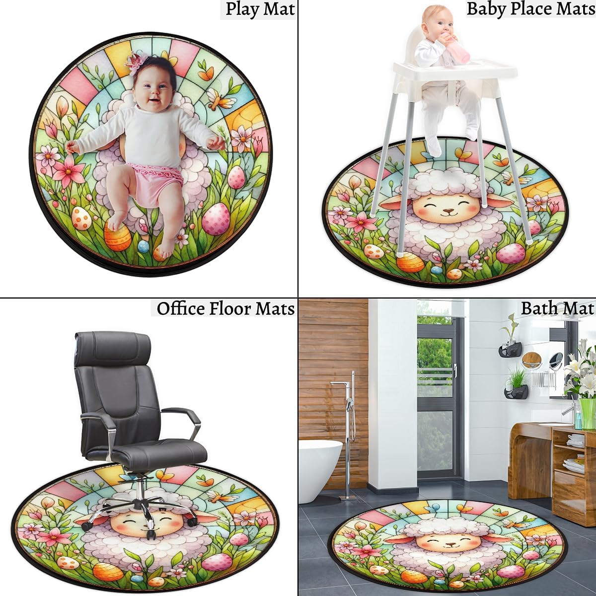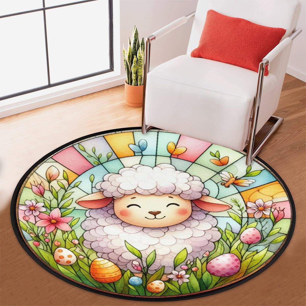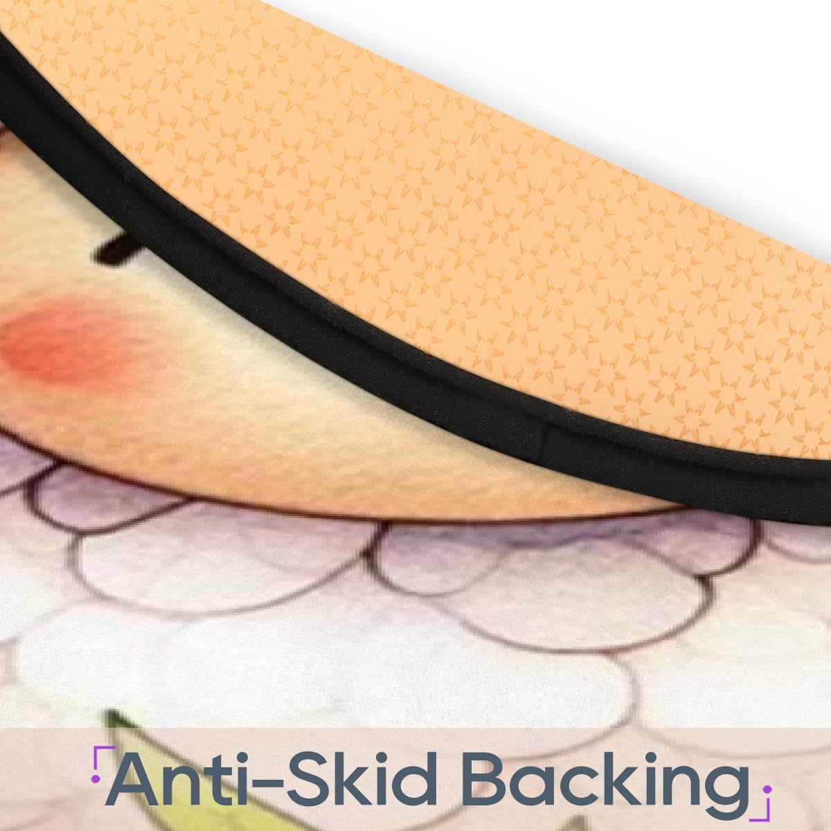 Add a pop of color to your living room or bedroom with this area rug, enhancing the beauty of any room in your home.Our store offers a variety of DIY-themed Half Round Door Mats to choose from, featuring designs such as animals, flowers, beaches, marble patterns, fun themes, and cute motifs.Product SpecificationsProduct Size: Available in two sizes: small (3Ft) and large (5Ft).Product Material: Ultra-fine polyester fabric and an anti-slip particle synthetic material backing.Product Shape: Round / Circle.Product Package: Includes 1 Round Rug.Product FeaturesSkid-resistant Backing: Safe for kids and pets. Children can lounge on the rug or dig their toes into it, enjoying a barefoot and relaxed experience.Water Absorption: The circular area rug absorbs water quickly and dries efficiently, protecting floors from moisture, dirt, and scratches. It brightens up your floors and becomes a highlight in any home décor.Easy to Clean: Machine washable, fade-resistant, and reusable. For daily cleaning, use a vacuum cleaner, broom, or wipe. The rug remains looking fresh and new. Dust and pet hair can also be easily removed with a vacuum cleaner.Decorates Your Home: This round floor mat is perfect for creating warm memories with friends and family. It adds a cozy touch to your sweet home.Applicable in Multiple Scenarios: Suitable as a bedroom rug, indoor rug, front door rug, entrance rug, or living room mat. It also works as home décor and can be placed under a chair or beside a bed.Note for Floor MatsFor the convenience of logistics and transportation, floor mats are folded for delivery. Upon receiving the rug, there may be creases. Lay the rug flat for 3–6 hours, and the creases will disappear.