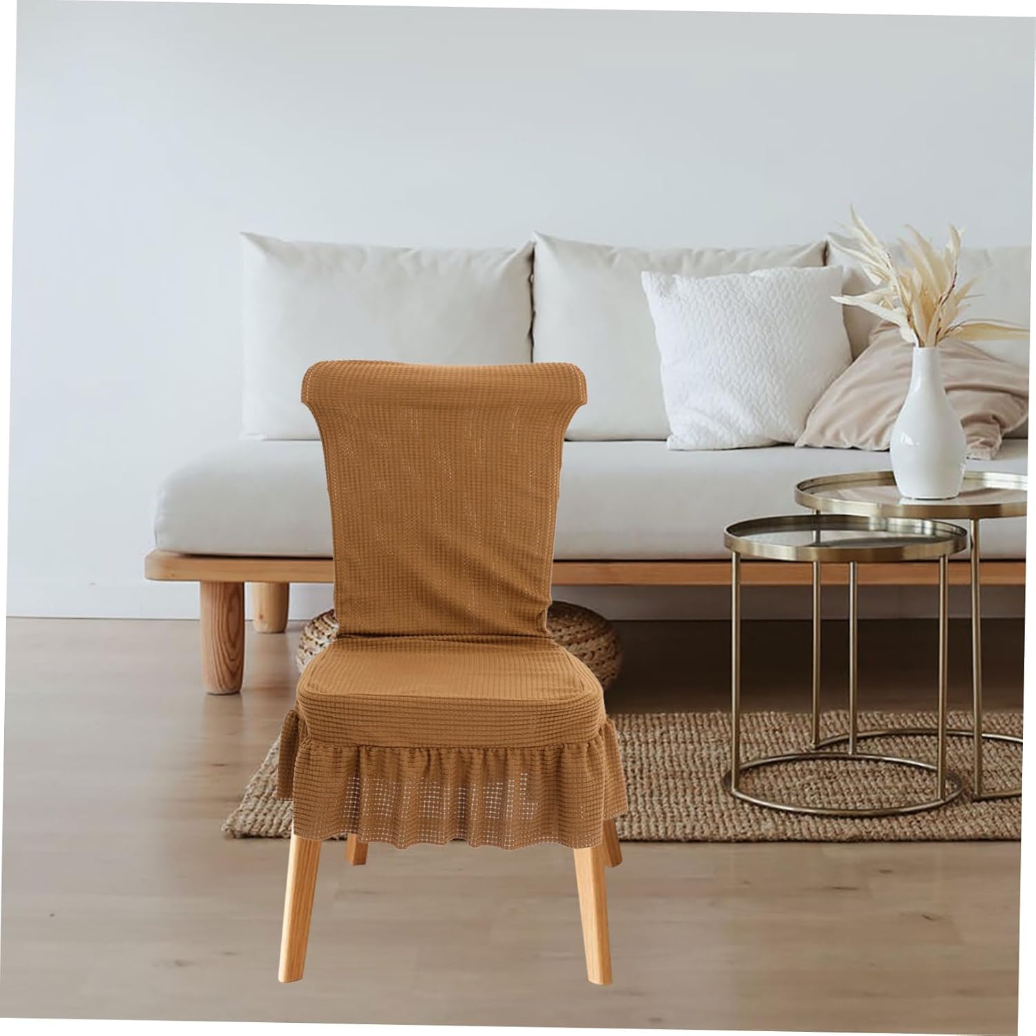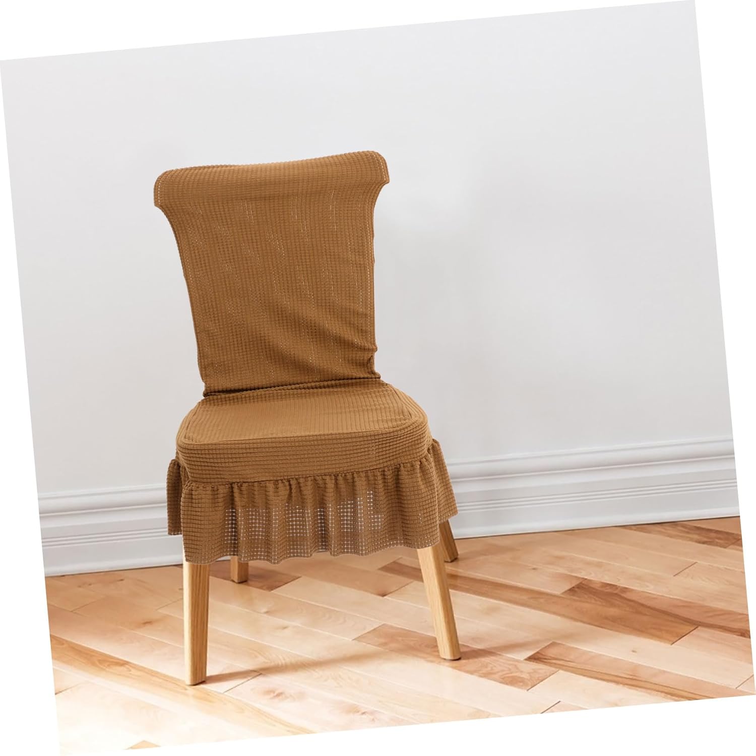 Package List 6 covers Features -Color:Coffee dining seat covers -Material:Polyester chair covers for dining chairs -Applicable size: Chair back height: 42-58cm; Chair back width: 35-48cm; Seat length: 35-48cm; Seat width: 35-48cm; Seat thickness: 5-10cm chair protector -Product Info:Waterproof checked chair cover -Size:112.00X36.00X0.20cm/44.02X14.15X0.08in removable washable chair protector -This chair cover is elastic and decorative and can be washed for multi-use, elastic and reusable dining room chair covers. -Owning the and break resistance ability, very . This type of chair cover with stretched can fit most dinning table chairs waterproof chair covers. -Easy to install, the chair cover is designed for protecting your chair well from scratches and stains waterproof chair cover. -Endurable to wash and free wrinkle. Separate chair cover, easy to load and unload, easy to clean dining room cover waterproof. -This chair cover is suitable for the chairs like dinning chairs, computer chairs, desk chairs and so on chairs covers.Goods Descriptiondining seat covers Not only protects your chair from stains, and more, also can decorate your chair.dining seat cover waterproof With solid color design, comfortable, wrinkle resistant, no ironing required, easy to wash.waterproof dining room chair cover This cover is flexible enough for most of the most dinning table chairs