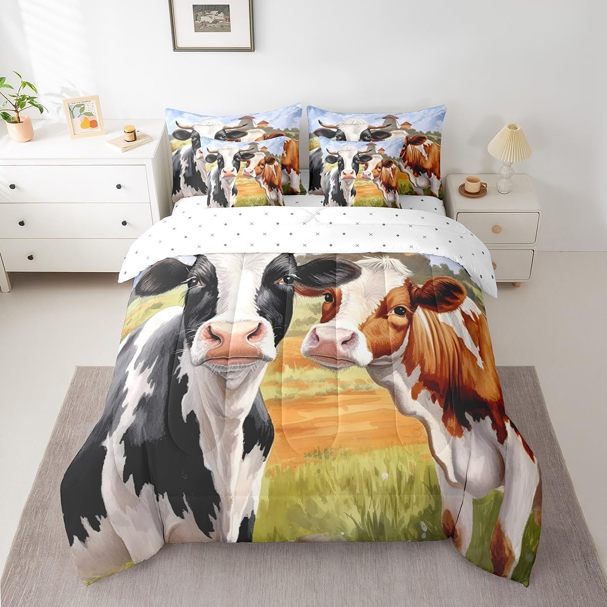 This unique modern 7 Pieces bedding set will enliven your room and bring freshness to it. Size Twin Size bed in a bag includes 1 Comforter 68"x90", 1 Flat Sheet 67"x96", 1 Fitted Sheet 39"x75"x16", 2 Pillowcases 20"x30" and 2 Throw Pillow Covers 18"x18". Full Size bed in a bag includes 1 Comforter 79"x90", 1 Flat Sheet 81"x96", 1 Fitted Sheet 54"x75"x16", 2 Pillowcases 20"x30" and 2 Throw Pillows Covers 18"x18". Queen Size bed in a bag includes 1 Comforter 90"x90", 1 Flat Sheet 102"x90", 1 Fitted Sheet 60"x80"x16", 2 Pillowcases 20"x30" and 2 Throw Pillows Covers 18"x18". King Size bed in a bag includes 1 Comforter 104"x90", 1 Flat Sheet 106"x90", 1 Fitted Sheet 78"x80"x16", 2 Pillowcases 20"x36" and 2 Throw Pillows Covers 18"x18". Material Polyester Great 7 Pieces Bedding for Room Decor Perfect choice for room decor such as bedroom, guest room, condo house, hotels, inn, spa, lounge, sauna, apartment building, and other spaces of home, dormitory, hotel, farmhouse and country house. Warm Reminder There is no difference in the product itself, but colors may appear slightly different to each user due to individual monitors. Please measure your bed properly and make sure you pick the right size. Attention to Detail for Your Satisfaction While we strive for perfection in showcasing our bedding sets, please note that actual colors may vary slightly due to individual monitor settings. Ensure to measure your bed accurately to choose the correct size for an impeccable fit and experience.