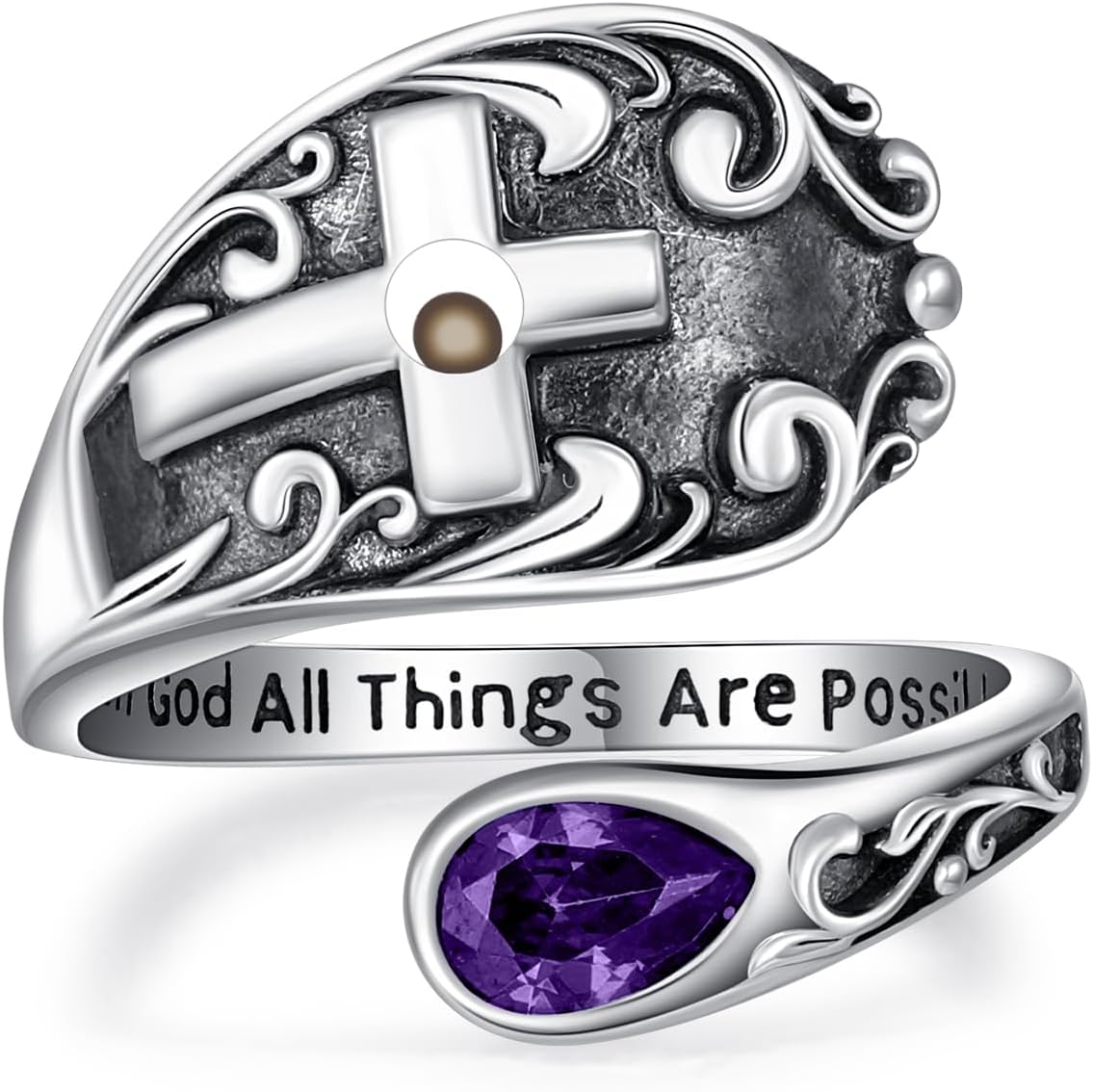 Package Included: ♥ 1 * Sterling Silver Cross Spoon Ring ♥ 1 * Jewelry Polishing Cloth ♥ 1 * AOBOCO Gift Box Make a bold statement with these exquisite cross rings for women. This intricate and unique ring showcases stunning faith, mustard seed, and inspirational designs. Elevate your style with this eye-catching cross ring that conveys a touch of mystical charm and fierce elegance.