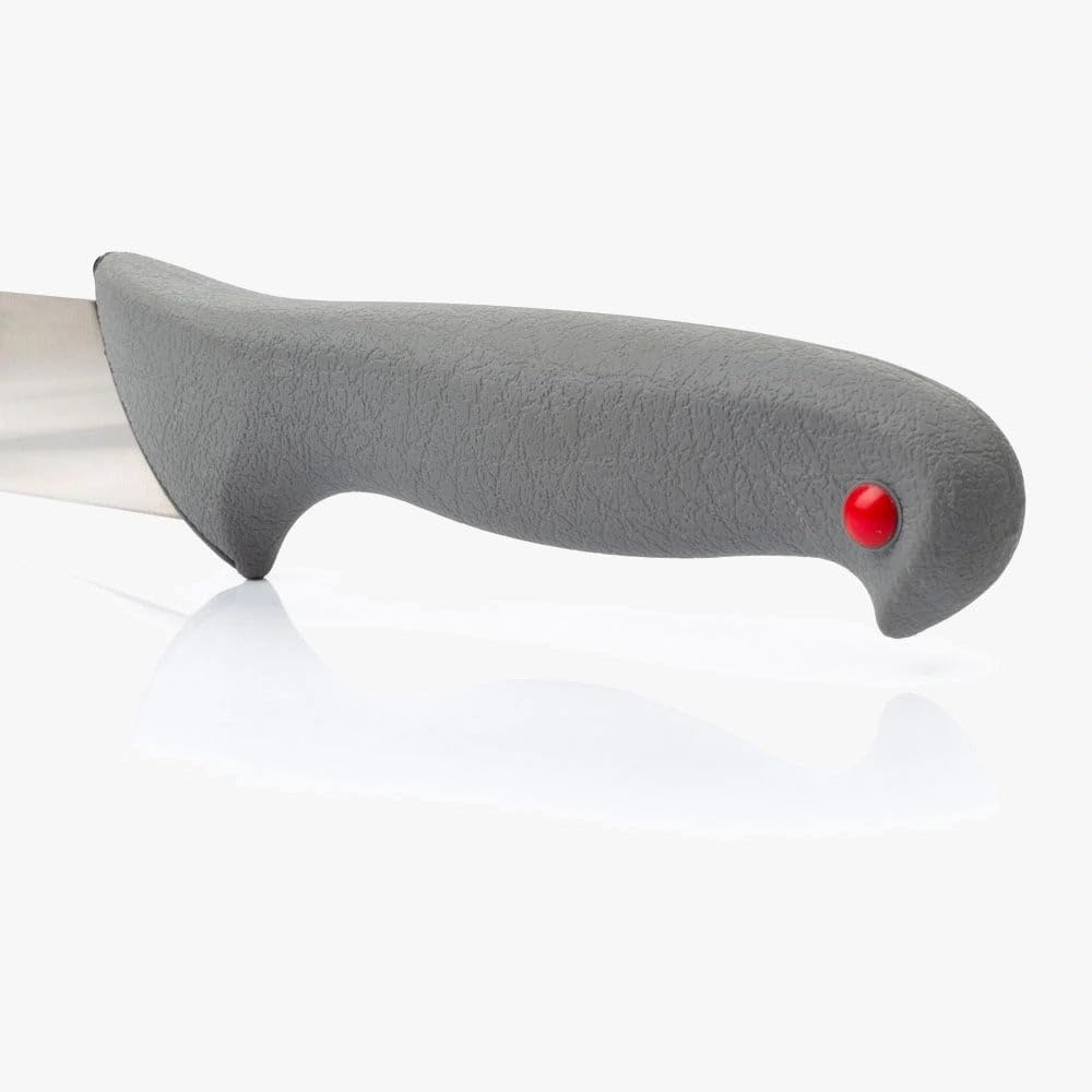 DESCRIPTION SERIES COLOUR PROOF The colour-prof series is especially designed for prolonged and heavy professional use Exclusive, high usable and lasting NITRUM stainless steel The handle used in this series is a REVOLUTIONARY ERGONOMIC design using a core of polypropylene (PP) in the heart of the handle and soft rubber coating on the outside. This special mixture of materials gives this unit greater comfort and adaptability as well as being non-hygroscopic (meaning it does not absorb liquids). It is also resistant to high temperatures and slippage COLOUR IDENTIFICATION SYSTEM: Each knife can be identified for cutting a specific food using a system of coloured polypropylene indicators located on the handle. Thereby promoting better hygiene and health for the consumer. Based on European standards