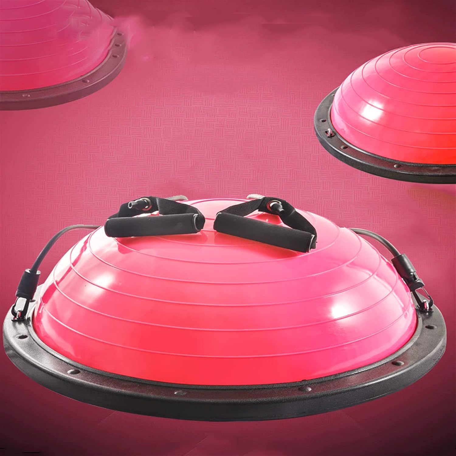 Intimate and compact design, does not occupy any space. At home can also make training richer, relaxed and aerobic. The sphere and the chassis are integrally injection molded to avoid delamination and cracking, and the product is more durable. The overall seamless design makes movement quieter. The tension rope is made of high- quality TPR material, with uniform tension and wear resistance. Equipped with a pull rope, it enriches the training asanas, enhances the training strength of the previous version, and enhances the training effect. Size: about 47cm in diameter Material: PVc Net weight: 2800g Color: coral pink, haze blue Including: balance equipment*1