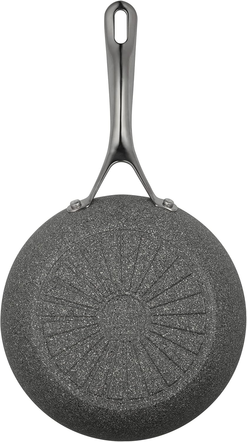 The Torino Series is a beautiful coating reminiscent of granite called granite coating. It can also be used with a metal spatula and is functional. V-shaped stay-cool handle design keeps the handle cool and comfortable while cooking