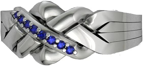 925 solid sterling Silver zircone ston Blue Sapphire color ( Not natural Sapphire )( Not hallow or paledt ring) The ring top part 10 mm (0,39") down part 4 mm (0,15") weight around 4 gram Ring has a hallmark of 925 (which means Sterling Silver) Avalaible size 4 to 15 included half sizes The ring come to you assembled, you can seperate and get back tohether ( please watch youtube video #OFLIUMi m Puzzle ring master, i make products my own workshop i keep all size my stock