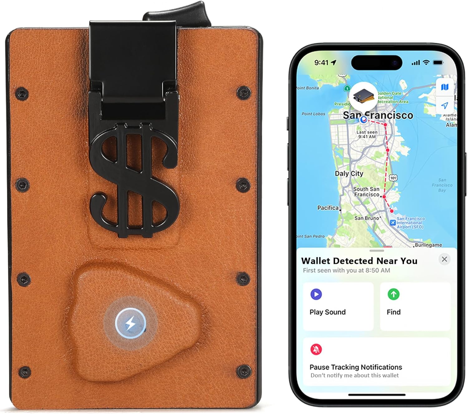 Bluetooth Anti-Lost with Wallet Tracker Works for Find My(iOS)- Anti-Lost [Left Behind Reminder ]Slim Pop Up Card Case in Leather Money Cli