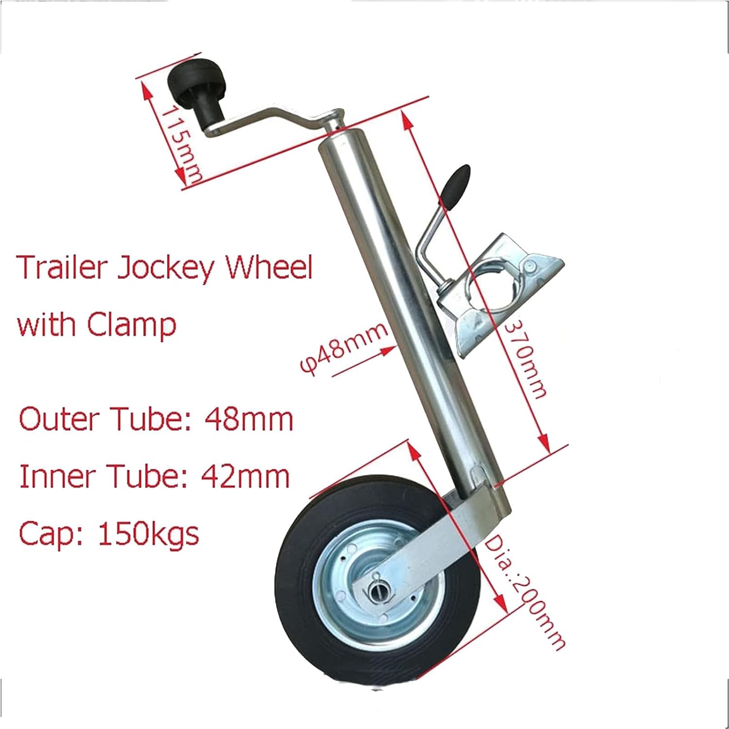 【: Removable and swivel trailer guide wheels, high quality galvanized finish, 20cm polypropylene wheel reinforcements and stainless steel nut locks for added durability, includes assembled trailer frame 【Basic parameters: Product name: Trailer jack/RV trailer accessories/Trailer leg guide wheels/Trailer leg guide wheels/Trailer guide wheels Net weight: 6.3kg Material: steel Capacity: 150kg Travel: 25cm Lifting height: 25cm Surface treatment: electroplating Method: side swing Wide range of uses: trailer support wheels, foldable design, convenient for driving and parking, widely used to support various boat trailers, yacht trailers, RV campers. 【Product package: 1* swivel trailer jack 【Please note the following: - There may be slight size errors due to manual measurement. - Due to different screen displays, there may be slight color differences. - Please be careful when using the product, please refer to the actual product.
