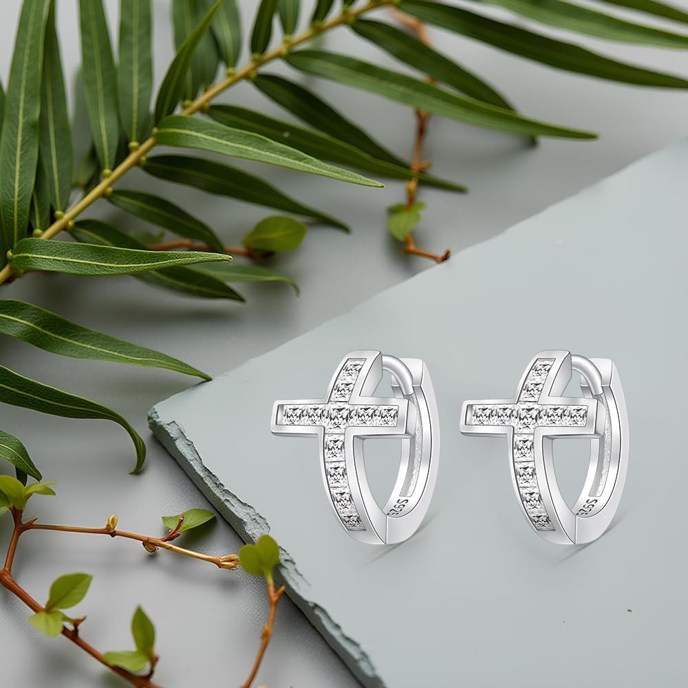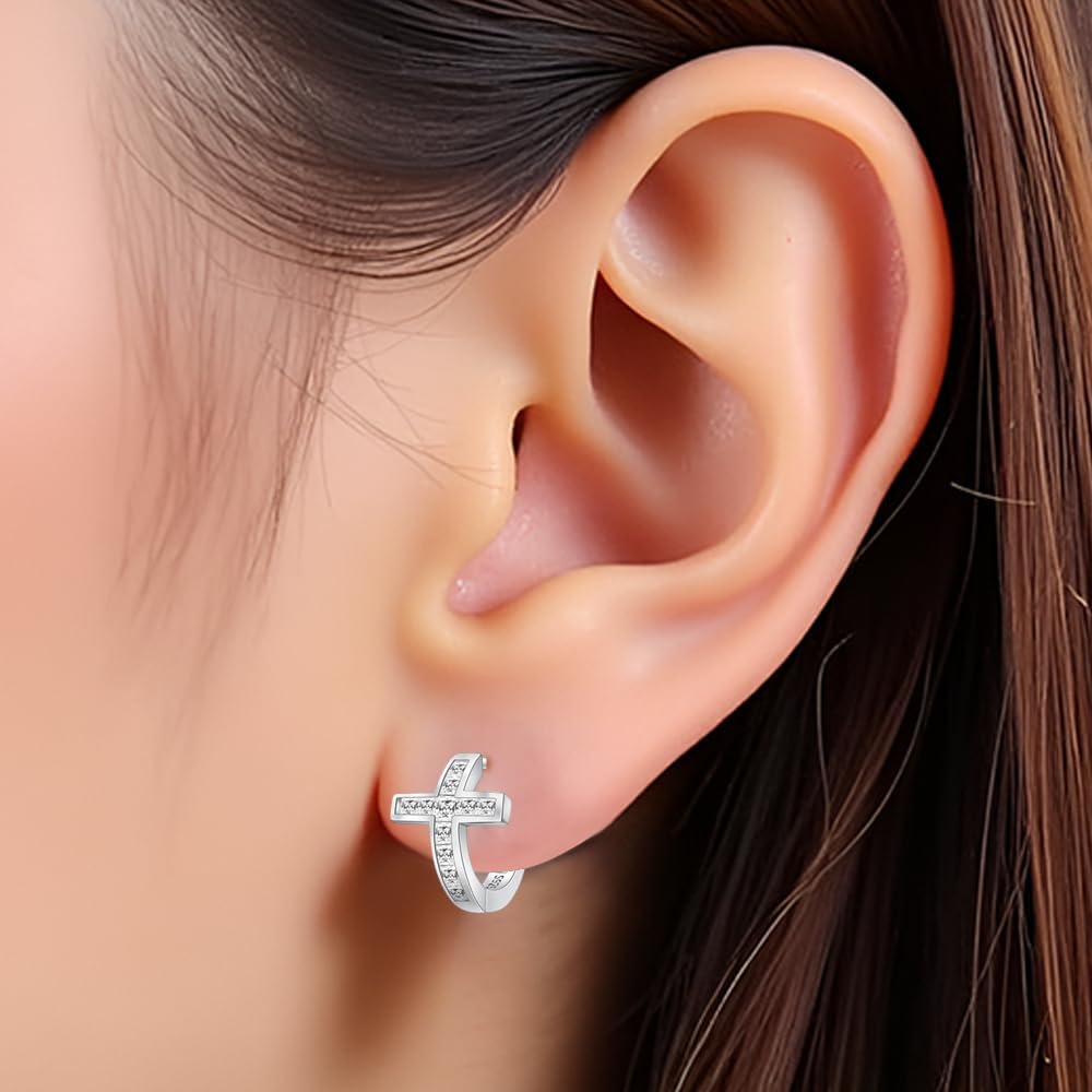 Your Exclusive Tag cross earrings, cross earrings for women, sterling silver cross earrings, cross hoop earrings, clip on cross earrings, inverted cross earrings, cross clip on earrings, cross huggie hoop earrings, cross jewelry for women, cross jewelry Product Details Material: sterling silver,cubic zirconia Cross Earrings Size: internal diameter 0.48inch Package Contents 1X Cross Earrings 1X Exquisite Gift Box Beyond Their Aesthetic Appeal Featuring captivating cross earrings, the earrings serve as a meaningful reminder to keep safe and healthy Perfect Gift Ideal for any occasion, from casual outings to formal gatherings, these versatile cross earrings make a thoughtful and stylish gift Care Tips -Store in a dry, airtight container to prevent tarnishing -Use a silver polishing cloth for occasional cleaning -Avoid direct sunlight to prevent fading -Keep away from extreme temperatures to maintain shape -Handle with care to prevent bending or scratching