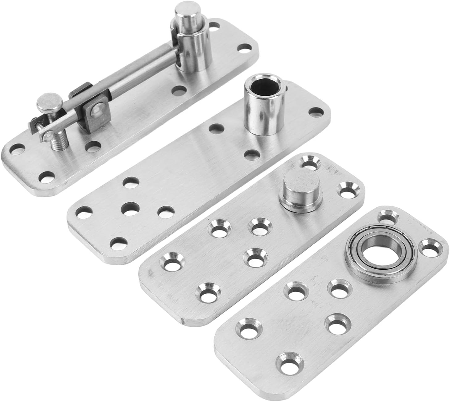 [Multi-Door Compatibility] Compatible with wooden doors, aluminum framed doors, and concealed doors for versatile applications. [Noiseless Operation] High-strength bearings ensure smooth and silent rotation without squeaks. [Heavy-Duty Construction] Thickened stainless steel design supports up to 600lbs for long-lasting use. [Adjustable Extension] Customizable extension distance for flexible installation on various door setups. [Brushed Texture Finish] Aesthetic and durable brushed texture enhances resistance to wear and tear. Item Type: Hidden Door Hinge Material: Stainless Steel Rotation Angle: 360 degrees Product Use: Suitable for all kinds of wooden doors, aluminum frame doors, hidden doors, etc. Capacity: Approx. 272kg / 600lbs 4 x Hinge Components 32 x Large Screws