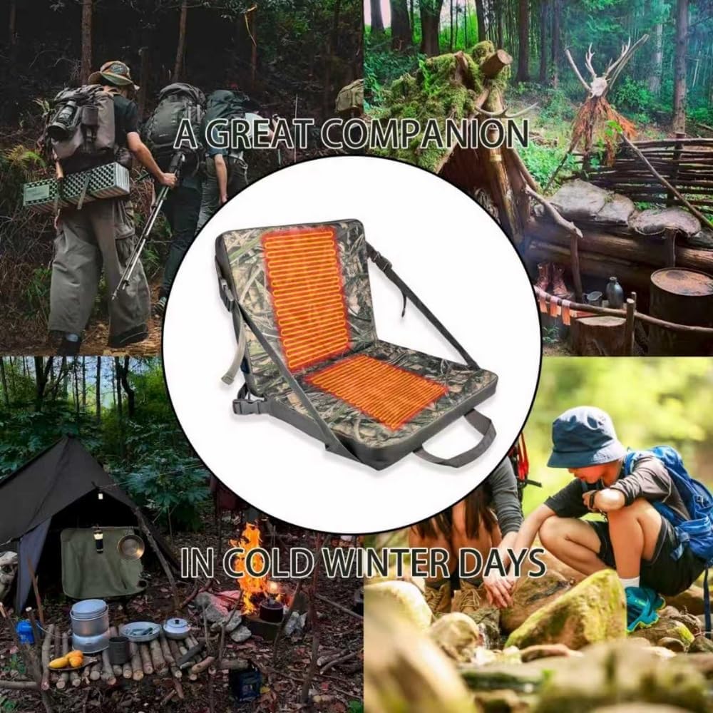 Hunting Seat Cushion with Backrest Adjustable Portable Heated Seat Cushion Suitable for Hunting Ice Fishing Hiking and Camping (Batteries Not Included)
