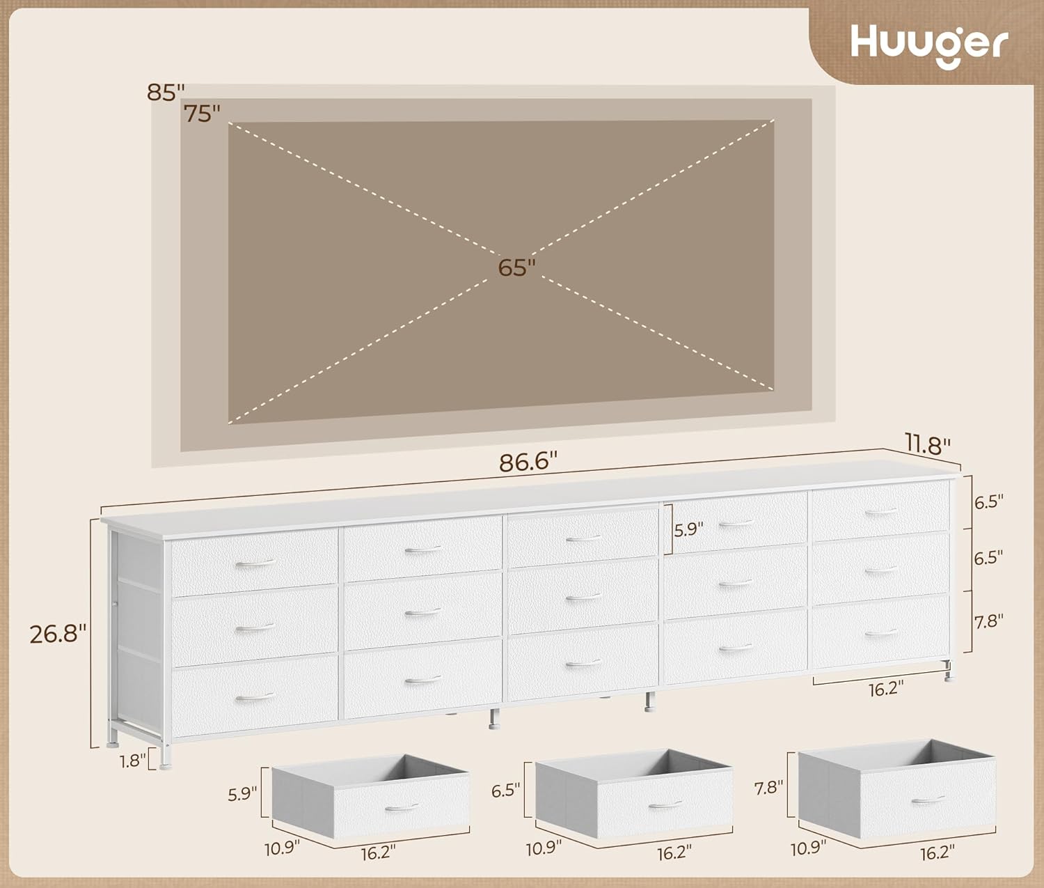 | Item Dimensions D x W x H | 11.8"D x 86.6"W x 26.8"H |