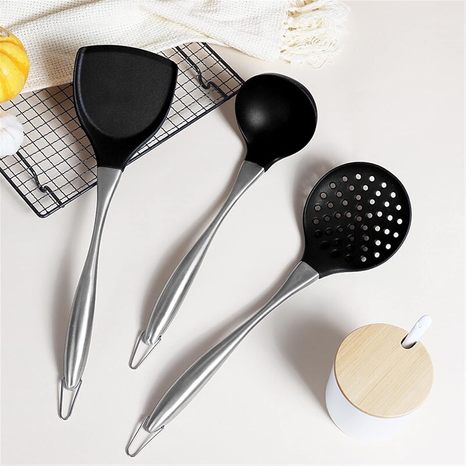 SAFE:No broke,No split,No hurt to your pan,safe and non-toxic。 FUNCTION:Ideal for flipping eggs,burgers,crepes and more Various cooking ingredients,best tool option for cooking food。 SIMPLE&EASY:Simple to use,clean,heat-resistant and non stick way for your cooking。 UTILITY:They are sturdy,flexible and very durable,very useful cooking spatulas. QUALITY GUARANTEE:100%quality guarantee,no-hassle。 Compare with similar items Product name:Stainless steel spatula Product Material:Stainless steel 、Silica gel Product size:10*35.5 CM /8.5*32 CM /10*35 CM Applicable environment:dedicated for daily kitchen Notice: 1.Please check the size and color before buying. 2.Exclude items not shown in product photos. 3.Please note that due to different monitors,there may be slight color differences,please understand. 4.The above data is for reference only.Dimensions are measured manually.Each variable may be different.Please refer to the actual product.Thank you. 5.If you find any problems with our products,please feel free to contact us via email and we will solve the problem as soon as possible. 6.Your sharing and feedback are welcome so that we can provide you with better products and services.