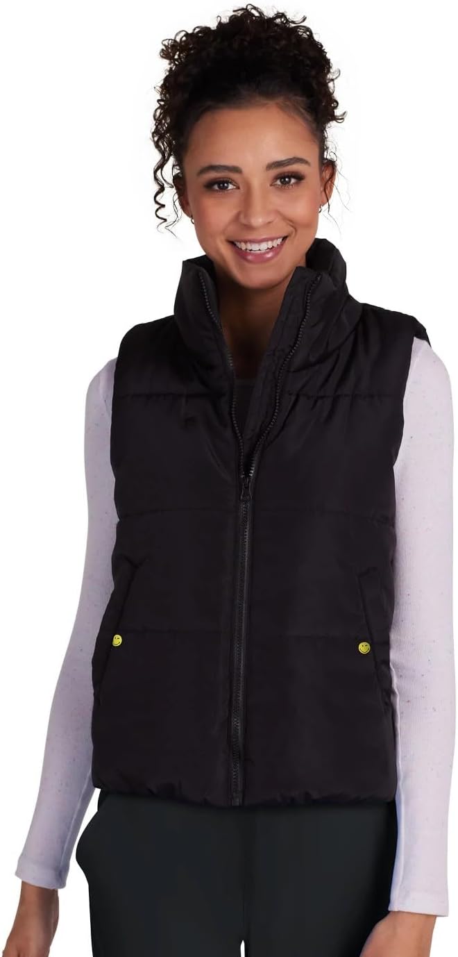 Fun and fashionable women's vest that'll add color to your day. A special collaboration between koi and SmileyWorld. Contemporary fit.