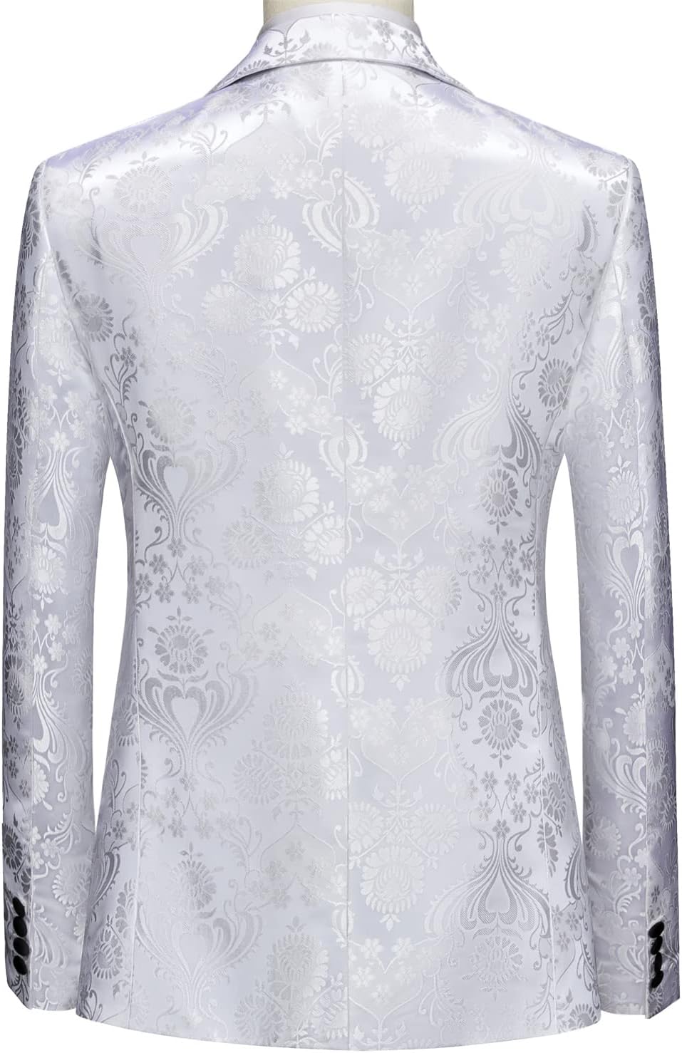 Brand Name:GwenhwyfarSize:XS/S/M/L/XL/2XL/3XL/4XLColor Option: Pink/Royal Blue/Black/White/Brown/Yellow/GreenMaterial: We adapt jaquard material to make the suits which is top grade,and the unique pattern are woven not printed which not fade.Fit Type: Regular fit/Slim FitCollar: Shawl Lapel/Peaked Lapel/Notch LapelPackage Contains:: 1* Blazer Jacket+1* Waistcoat+1* PantsOccasions : daily wearing, wedding dress, birthday party, dinner,homecoming prom,formal suitCustom-made Service: We also provide custom-made service for free,please contact the seller to make sure your size and suit style.Size Suggestions: Please make sure the body chest is at least 2-3 inches smaller than the chest of the jacket and the body size should be smaller than the size of the jacket in all parts to have enough redundancy.Mens costume care recommendations:Dry cleaning is recommended; do not bleach; dry in a straight line; iron low, if necessary, before wearing; hang on to clothes when not wearing.