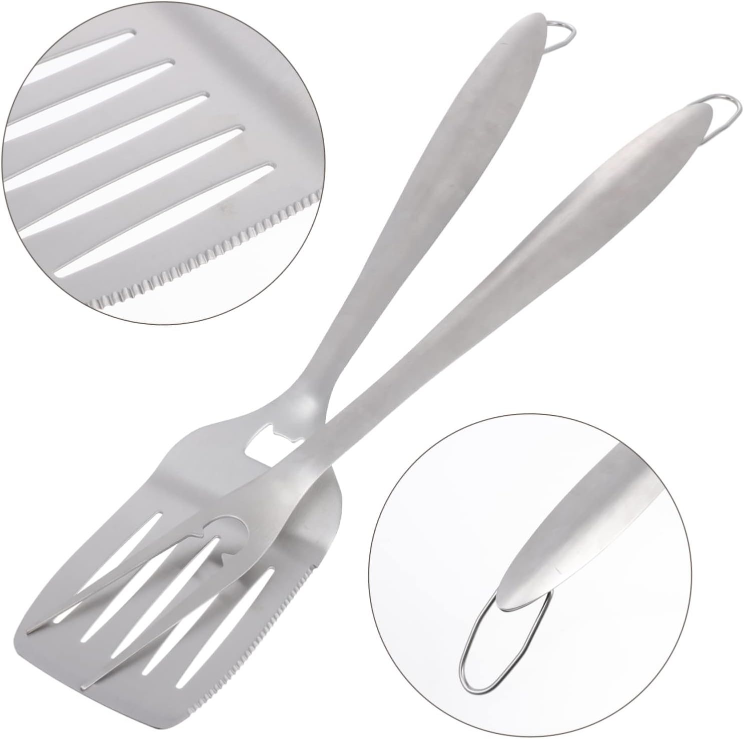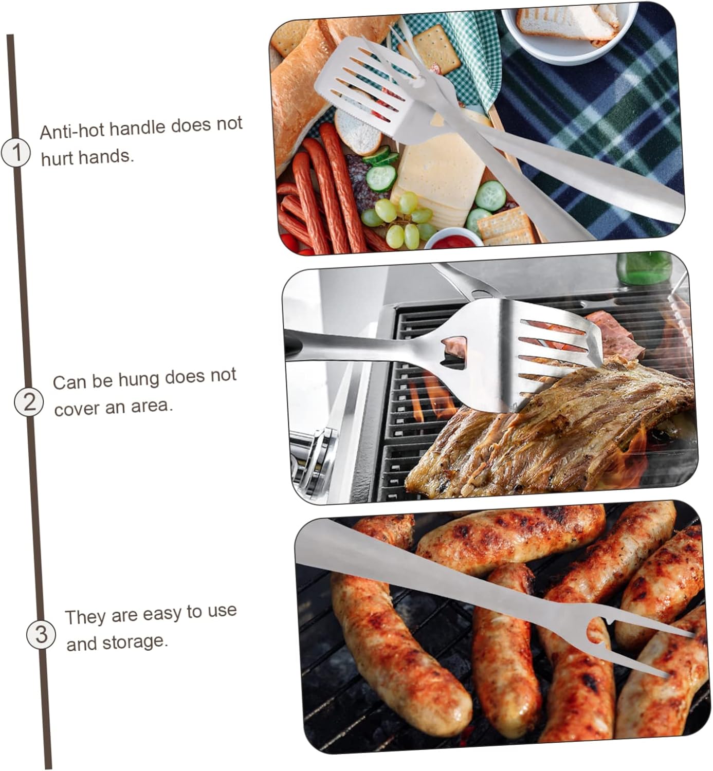 Package List 1 x barbecue fork 1 x barbecue spatula Characteristics -Material: Stainless steel+plastic Barbecue Tools Kit -Size: About 45.00X9.00X3.00cm/17.68X3.54X1.18inch BBQ Tools Kit -Color: Silver Barbecue Accessories -Suitable for barbecues, camping, holidays, etc. This complete and grill kit contains everything you need for grilling BBQ Fork. -Manufactured by stainless steel, safe and durable. A great present for foodies, barbecue fans, cooks, camping lovers Barbecue Tools. -Some of the grilling tools also have that can be hung. You can choose to place them directly on the grill Grill Utensils. -This set of cooking tools are for BBQ, party, outdoor gathering and camping etc Outdoor Barbecue Tools. -Made from stainless steel material, they are practical and durable for long time use Grill Accessories.Goods InformationStainless Steel BBQ Utensils stainless steel corrosion resistance, this is one of your choices.BBQ Shovel This set is well made of stainless steel material for durable and practical use.Stainless Steel BBQ Tools It is the necessary kitchen tool for each family