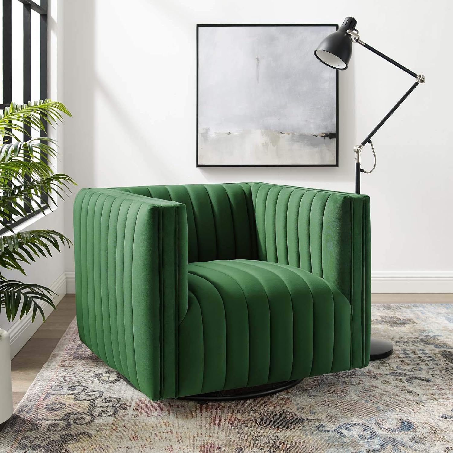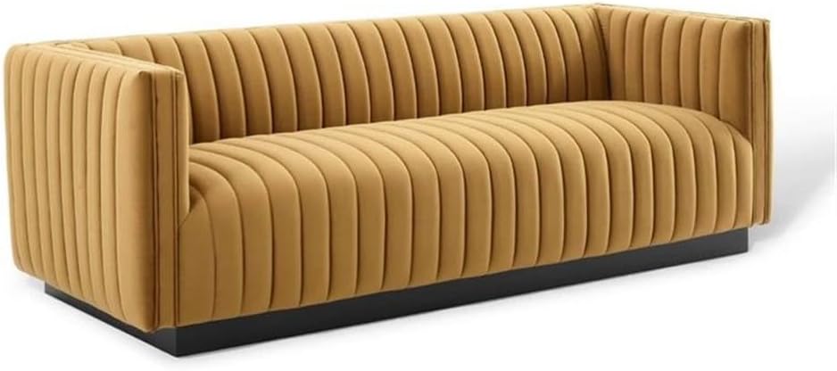 Magnetic appeal surrounds the Conjure Channel Tufted Performance Velvet Upholstered Sofa. Luxuriously soft stain-resistant performance velvet upholstery covers dense foam padding with an individually wrapped spring coil system to create a supportive living room couch that will become the go-to lounge spot for family and friends. Vertical channel tufting and subtle French piping on the arms adds depth to this vintage glamour sofa that effortlessly becomes the focal point in your living room. Solidly constructed from wood and plywood, the Conjure Living Room Sofa has non-marking foot caps and a matte black base. Versatile and elegant, the Conjure Performance Velvet Sofa is ideally suited for a variety of decor styles in your living room, lounge room, or home office. Sofa Weight Capacity: 1323 lbs.