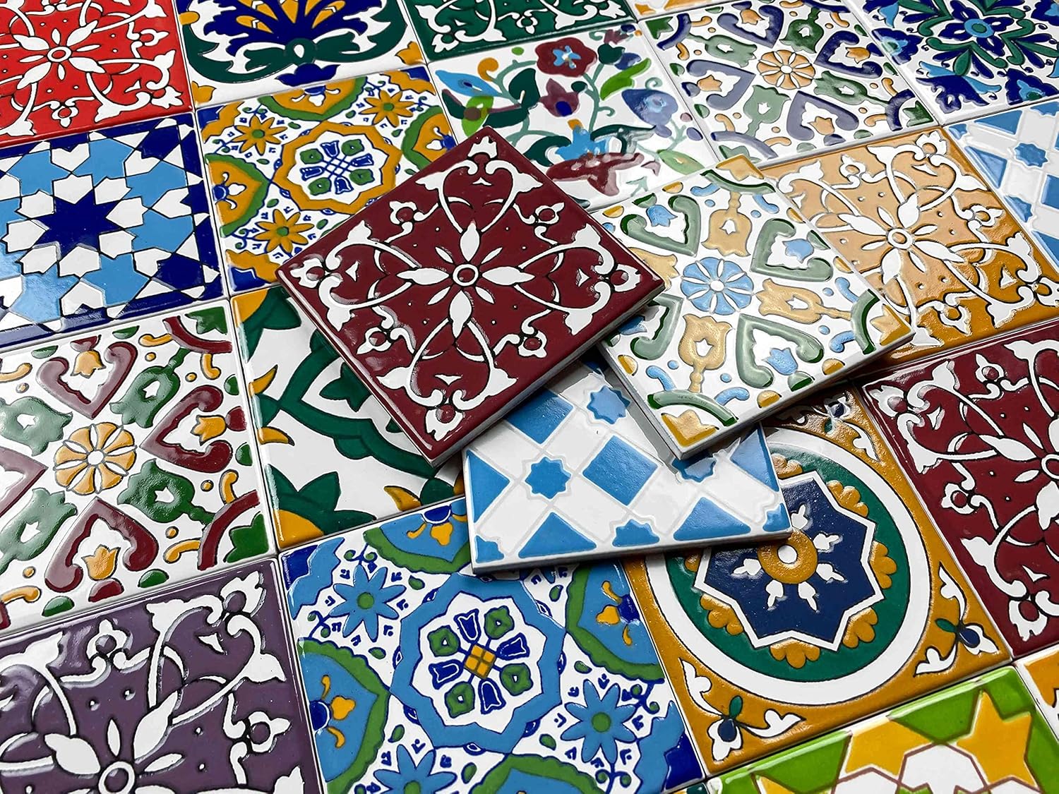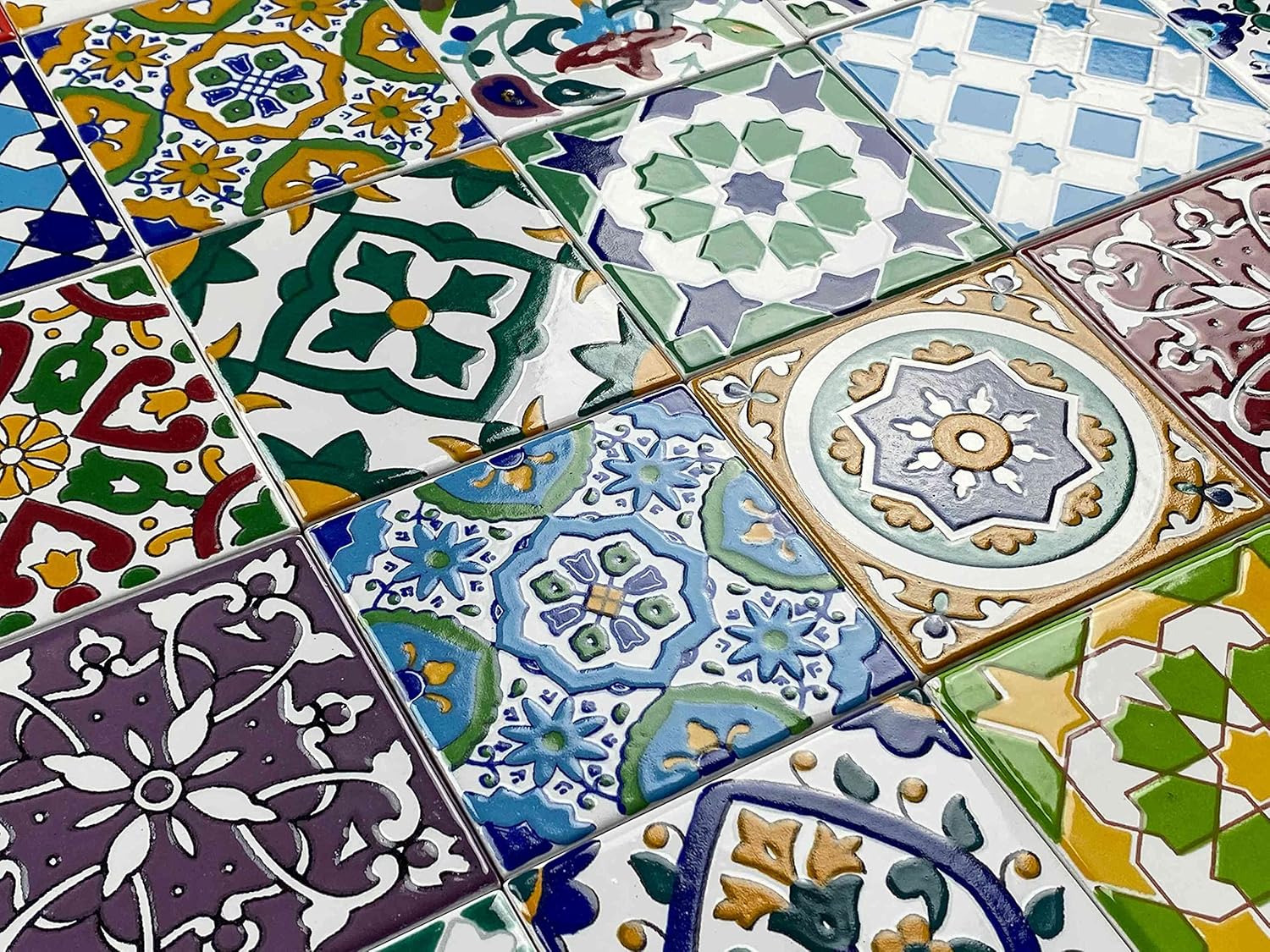 Tiles from the capital of Arabic ceramics, the Tunisian harbour of Nabeul, measuring 4x4 in. Moroccan style backsplash tile has Geometric Oriental Patterns on 4x4 in. The tiles are characterised by an oriental, mostly symmetrical original pattern. Tiles in colours that symbolise the region's multiculturalism, shades of the Orient, blue, green, yellow, orange and black. After the founding of Carthago in today's Tunisia, Nabuel harbor, the proverbial window to the world, became the cradle of sophisticated ceramic shapes and designs. Nobody other than the creators of Carthago were the first to invent mosaics, the precursor of patchwork designs. After the Roman conquest of Carthago, the subsequent invasion of the Vandals, other peoples marked ceramics with patterns that came close to their religion and culture. Currently, patterns on tiles are a kaleidoscope relating to the belief and creation of many ethnic groups. The manufacturing process allows you to maintain homogeneous tiles, which makes it much easier to place bathroom wall tiles on the intended surface. The method of applying patterns to Moroccan ceramic tiles is serigraphy, the prototype of screen printing. By applying colours to patterns by hand, employees give exceptional aesthetic impressions. The patterns on the tiles harmonise with each other and allow almost artistic positioning of the ceramic on the chosen surface. The tiles are fired after glazing, which allows for a high durability of the tiles. With patchwork patterns on tiles and their harmony you can place them in any interior that you need. Tiles are perfect for the entire walls of the bathroom. The kitchen, for example, in the library, creates a unique atmosphere. We recommend you to create your own pattern from our tiles.