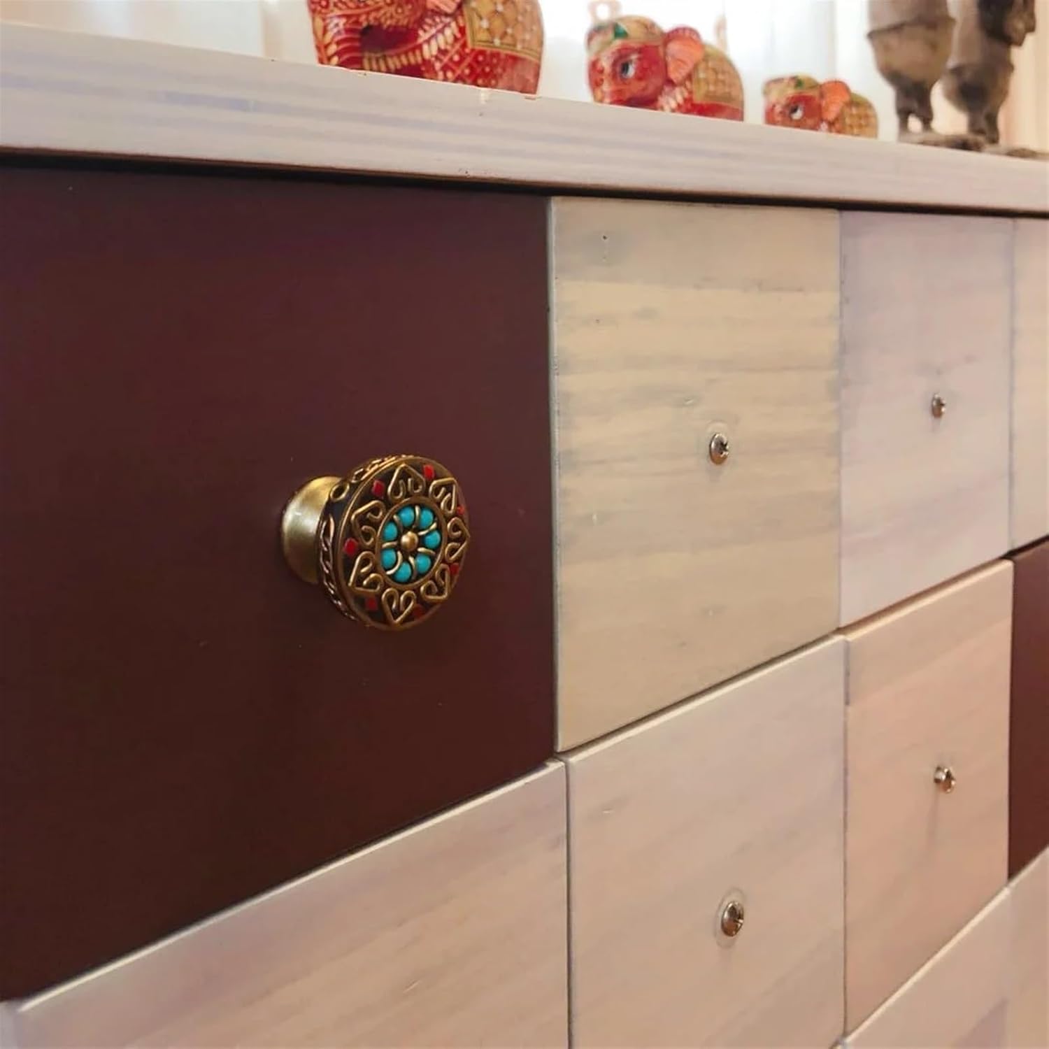 Drawer Handles & PullsNepal Ethnic Style Brass Cabinet Handles and Knobs Drawer Pulls Cupboard Handles for Furniture Wardrobe Handles Home Decor 1Pcs【See the second picture of the variant for detailed parameters】【See the second picture of the variant for detailed parameters】