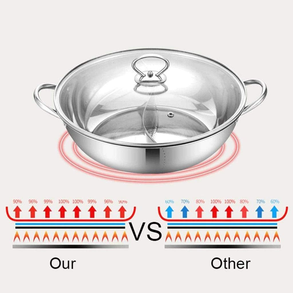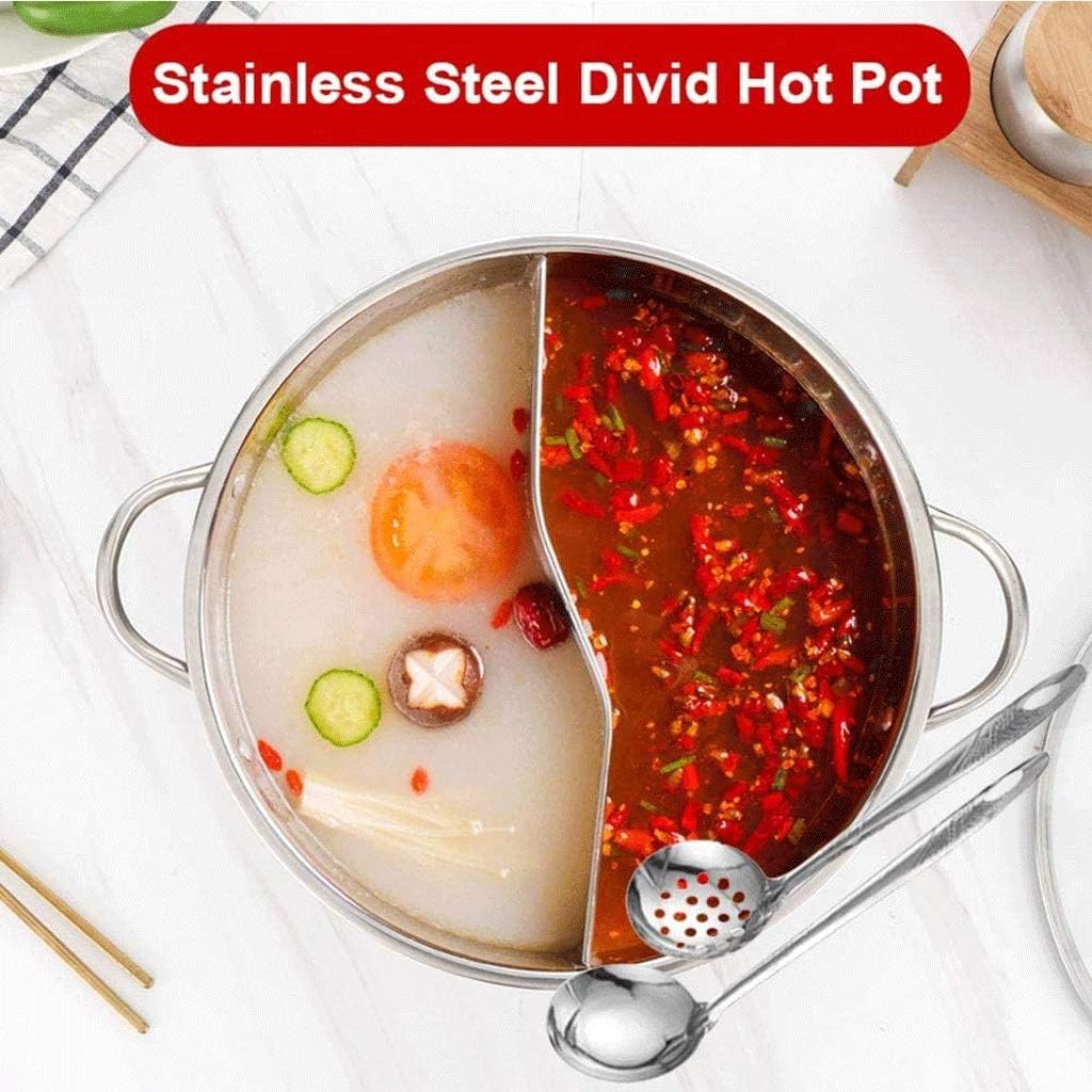 Stainless Steel Hot Pot with Divider for for Induction Cooktop Gas Stove,Dual Sided Yin Yang Hot Pot with Stainless Steel Dividerfeature:1、Safety material:Made of food grade stainless steel, but lightweight, safe to use on induction cooker, gas stove, and ceramic hob.2、Two flavors:Dual sided divider design for two different flavors, high encryption spot welding procedure, not easy to leak