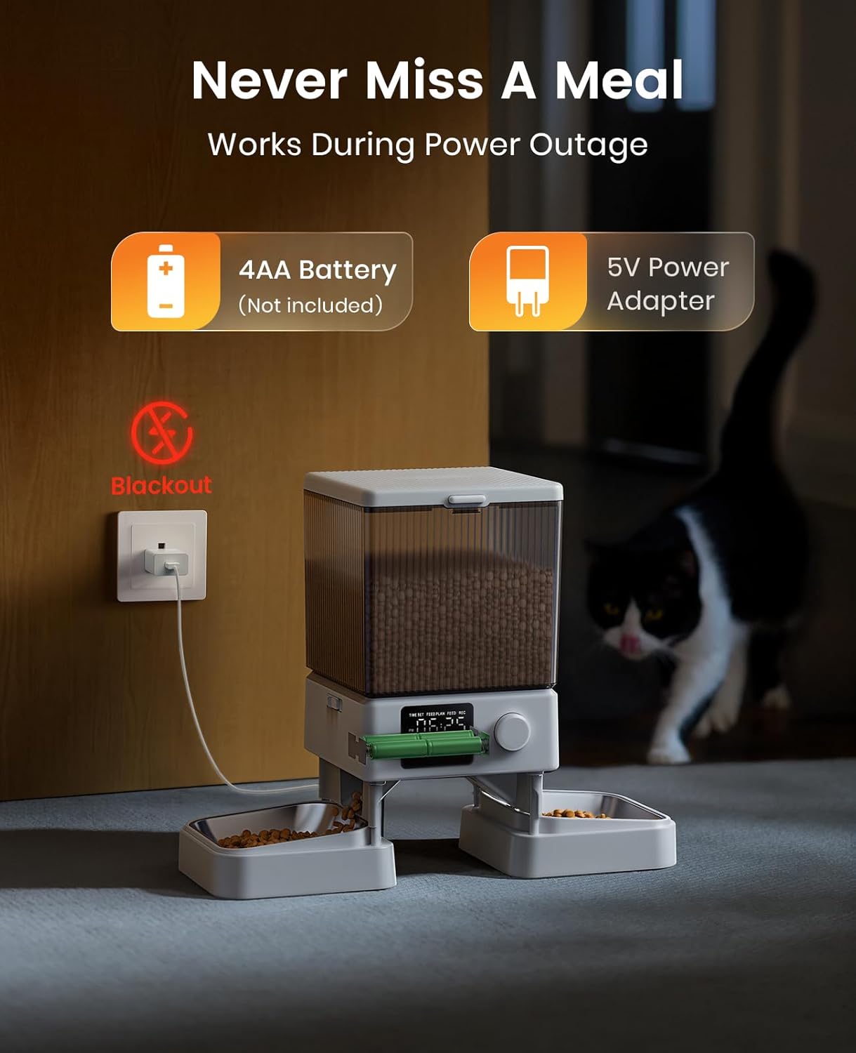 • 5 L/20 Cups Capacity: A full tank of dry food allows 2 adult cats to eat for 10 days. You don’t need to ask neighbors or pet sisters to feed your pets when you go away for weekend or vacation