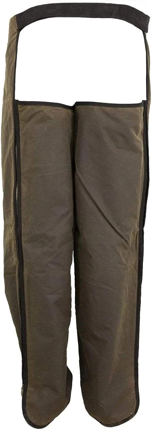 OUTBACK TRADING OILSKIN CHAPS. Outback Trading Co. offers both oilskin pants and chaps to keep your legs protected from heavy rains. Both the pants and chaps are designed to be worn over your pants to keep you protected from harsh conditions. Oilskin Chaps are the perfect addition to your rainy day in the saddle. Made with a cotton liner and an adjustable back strap for easy movement. FEATURES: - Waterproof & Breathable; - Cotton Lined; - Full Length Zip; - Adjustable Waist Belt; - Leather Belt Closure.