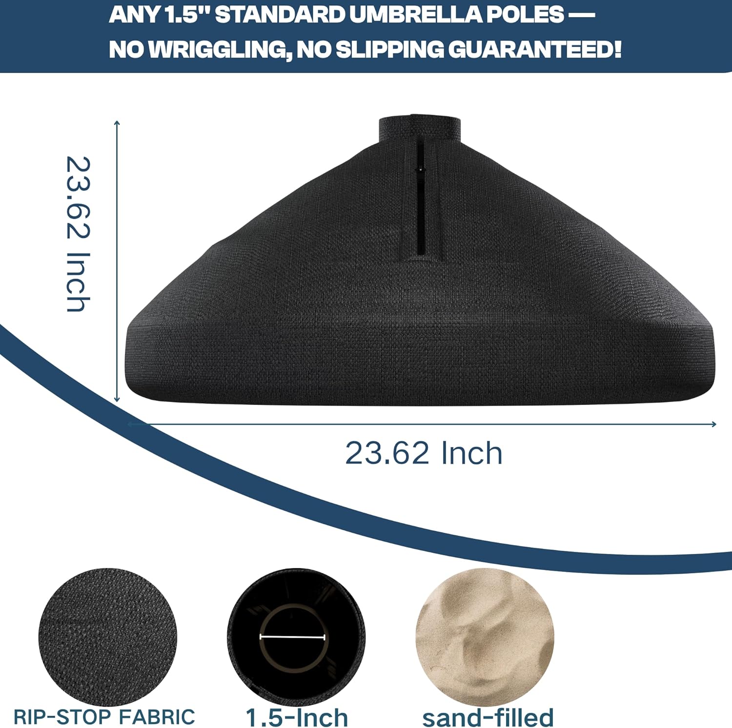 Create a safe, stylish, and stable outdoor space with our Patio Umbrella Base with Sandbag & Metal Stand. Perfectly designed for backyards, patios, decks, and poolside areas, this umbrella base combines strength, convenience, and universal compatibility. Unlike traditional bases that can tip or wobble, our stand includes a 360° fillable sandbag that wraps securely around the frame, ensuring maximum stability on windy days. The reinforced metal pole holder with a locking knob keeps your umbrella firmly in place, eliminating swaying and giving you peace of mind while you relax outdoors. Setup is fast and simple, just fill the sandbag, zip it up, and you’re ready to enjoy shade and comfort. When you need to move or store it, simply empty the sand for easy transport. Constructed from rust-resistant steel and protected with a durable cloth cover, this base is built to last with minimal maintenance. Designed to fit standard 1.5" umbrella poles and compatible with 9–10FT patio umbrellas, it’s the perfect foundation for keeping your umbrella steady while you entertain, dine, or lounge outdoors. ✔ Strong wind-resistant design ✔ Wobble-free locking system ✔ Easy fill and move ✔ Rust-resistant, low-maintenance construction ✔ Fits most standard umbrellas Upgrade your outdoor experience today with a reliable umbrella base that combines strength, style, and convenience.