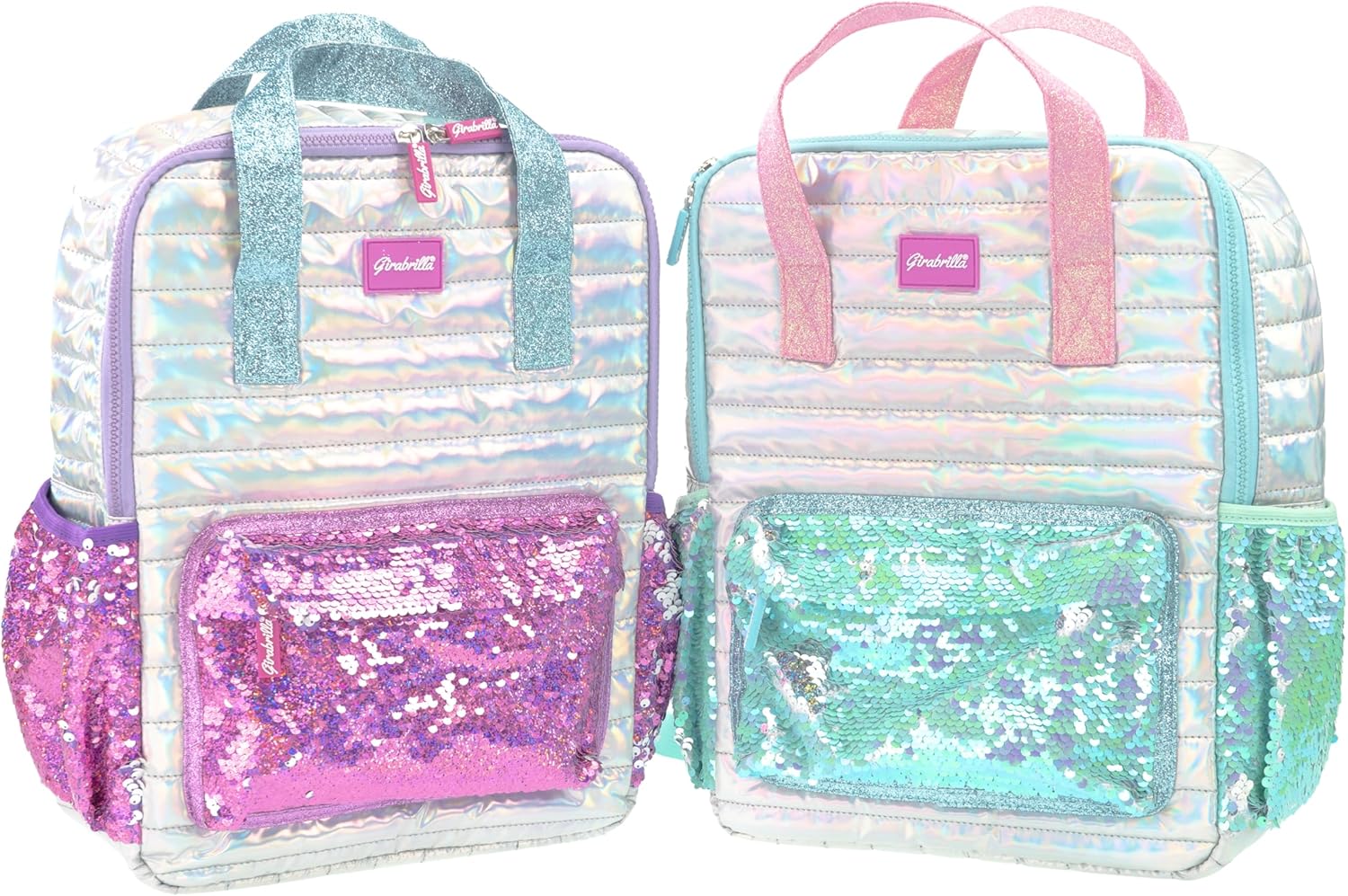 Girabrilla - Nice Group Puffer Glam School Backpack for Girls, with Reversible Sequin Pockets, Various Colours, Random, One Size, 19001
