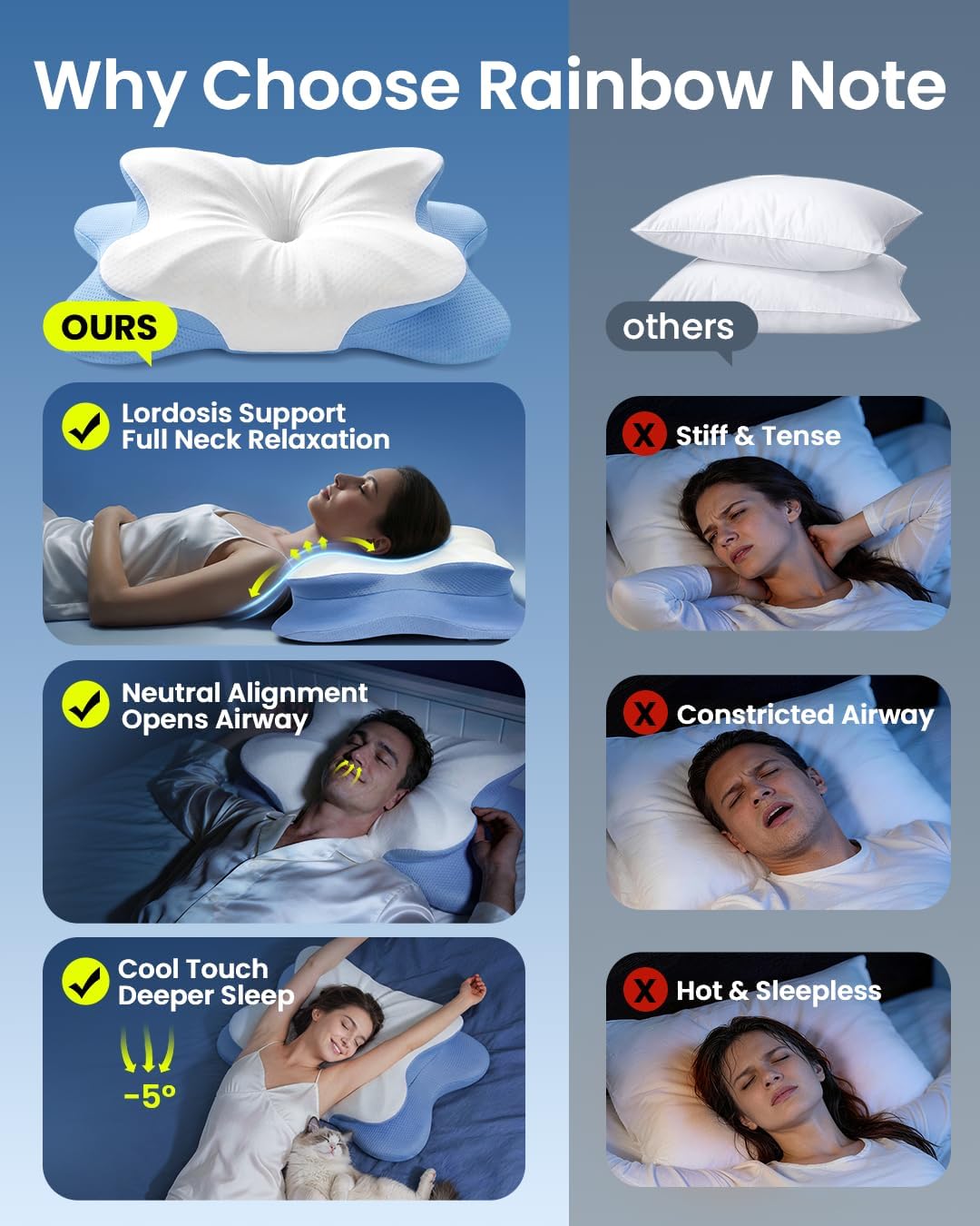 | Model Name | RAINBOW NOTE Ergonomic Contour Memory Foam Pillow |