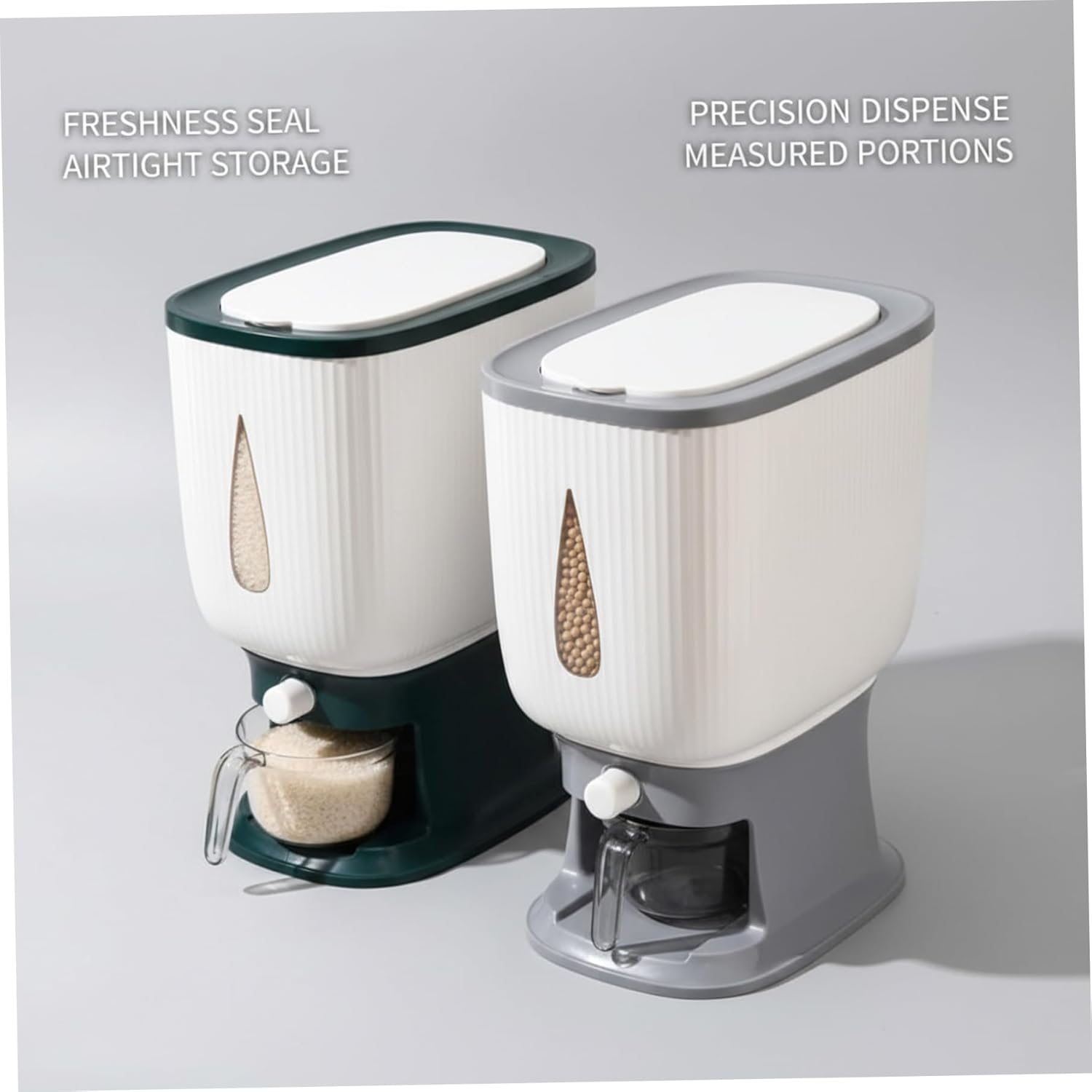 Description: Simplify your kitchen routine with our efficient rice storage solution. Designed for everyday convenience, this container features a user-friendly one-touch dispensing mechanism. Just press the button to release a controlled amount of rice directly into your cookware or the included measuring cup. We understand the importance of keeping dry goods fresh. The airtight seal on this storage container creates a protective barrier, helping to guard your rice, cereals, or beans against and pantry . The , plastic construction is built for daily use and easy cleaning. Its compact, space-saving shape fits neatly on countertops or in cabinets. The clear body provides instant visibility of contents, eliminating guesswork. Ideal for organizing not just rice but also pasta, , pet food, or other bulk dry goods. Upgrade your kitchen organization with a practical tool that combines smart storage with effortless access. Features:. -Color: Grey. -Material: Plastic. -Size: 20x32x38.5 cm/7.9x12.6x15.2 inch. -Capacity: 10kg. Transparent and visible real-time observation of the remaining quantity. Note:Manual measurement, please allow slight errors on size.The colors may exist slight difference due to different screens. Package Including 1 * Rice Storage Container