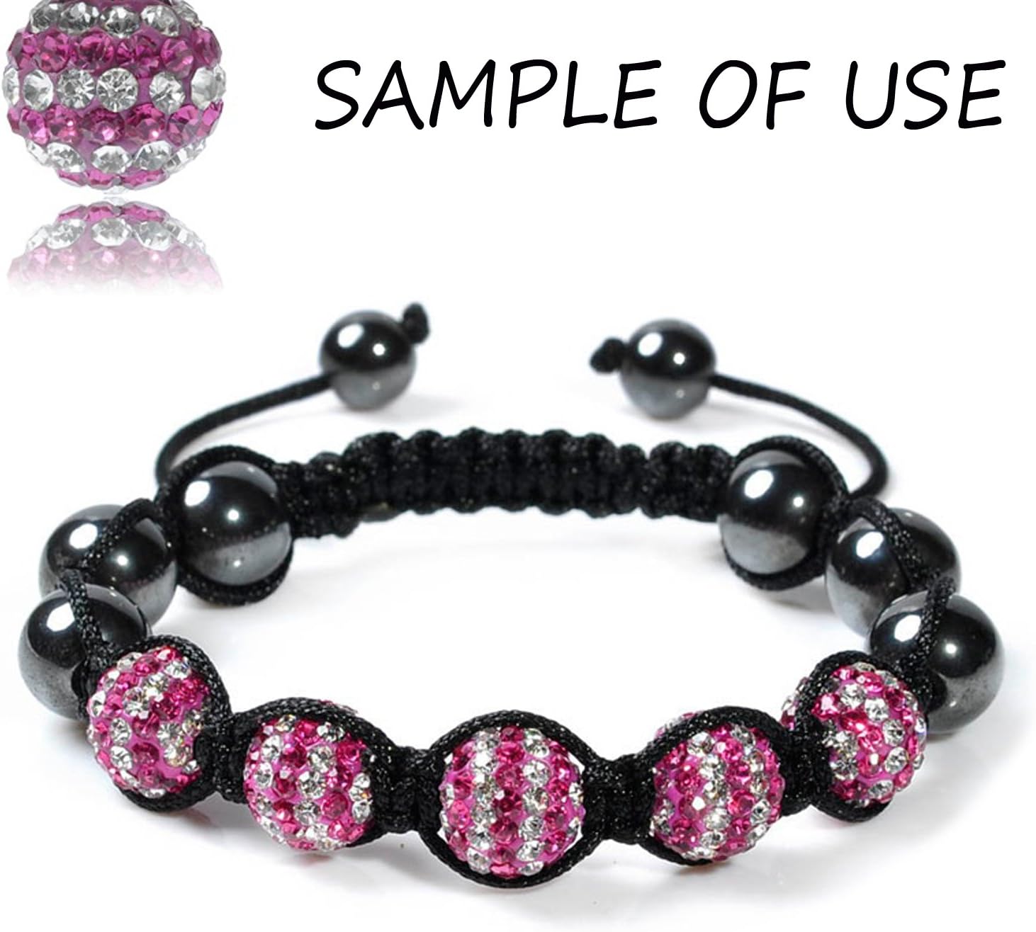 RUBYCA Disco Ball Shamballa Clay Pave Stripes Beads with Czech CrystalsPave beads is renowned for elegance and the illusion of a flawless, stone-encrusted surface. These beads are actually made by setting tiny crystals closely together and are held in place by the clay surface, making it look like a continuous stream of sparkle. No wonder they are often referred to as "Disco Beads." Shamballa bracelet is a style of bracelet, which have been around for centuries. Real Shamballa Bracelets are made from Shamballa beads which are threaded or knotted onto a cord by macramé knots these are then pulled to close. This sequence of knots and braids incorporate special beads, gems, stones, wood and metals. One of the most famous Shamballa beads is the disco ball clay beads. They are suited for men and women and have become highly popular with a timeless look.The meaning of Shamballa Shamballa bracelet has a history as old as time. Tibetan and Indian Buddhists believe in a mythical kingdom ‘Shamballa’, that is a spiritual sanctuary overflowing with love, purity, enlightenment, perfection, and peace. Shamballa pave “Disco ball” clay beads are suitable for making Shamballa bracelets and necklaces, but also can be used in DIY jewelry making projects.RUBYCA Warranty: 60 Days Warranty with A Proof of Purchase. No questions asked refund or Replacement will be provided. Please note:* Due to lighting effects, monitor's brightness / contrast settings there could be some slight differences in the color tone of the pictures and the actual item. * Product in the picture may look larger than the actual, Please pay attention to sizes. Come with RUBYCA easy zip storage bag