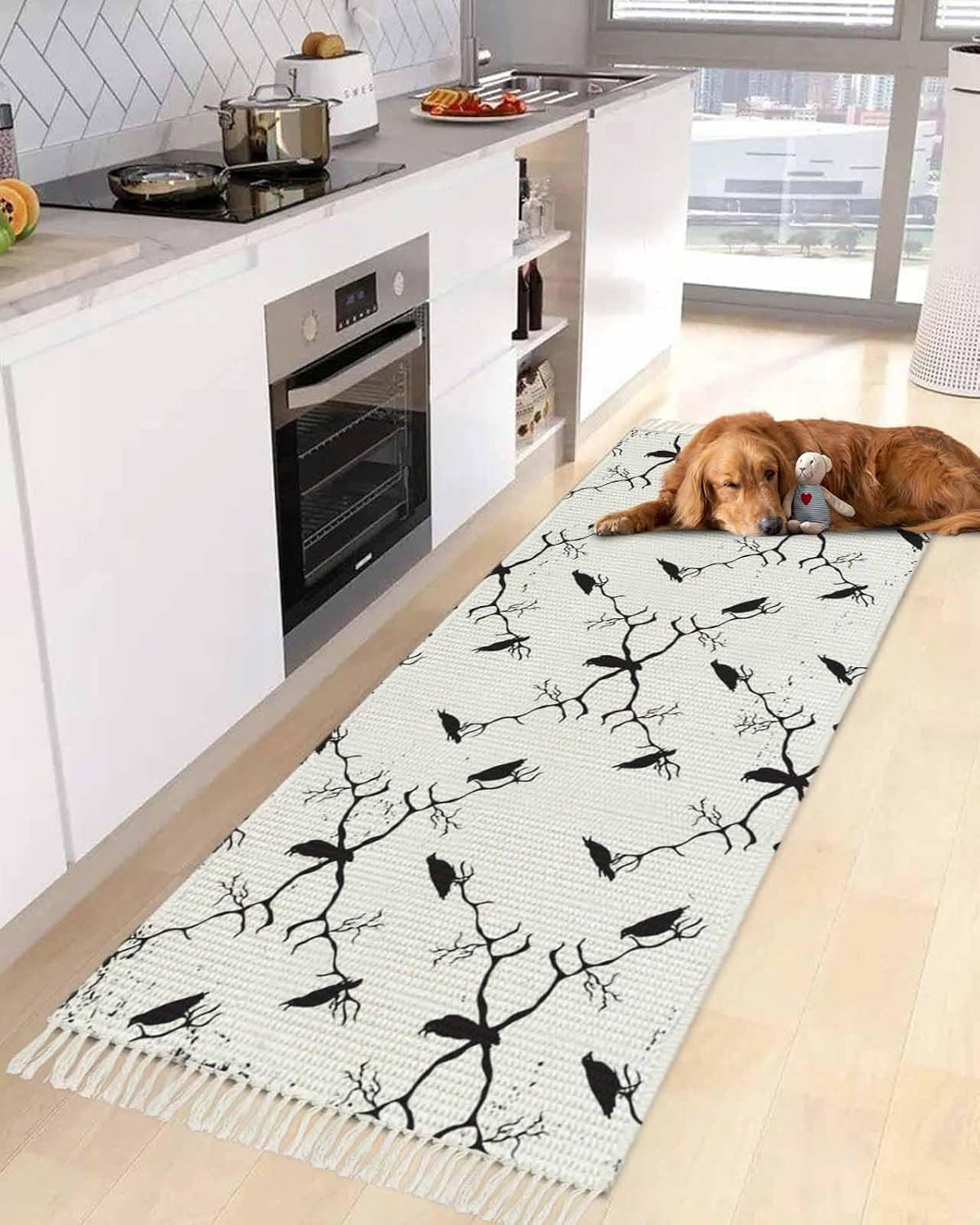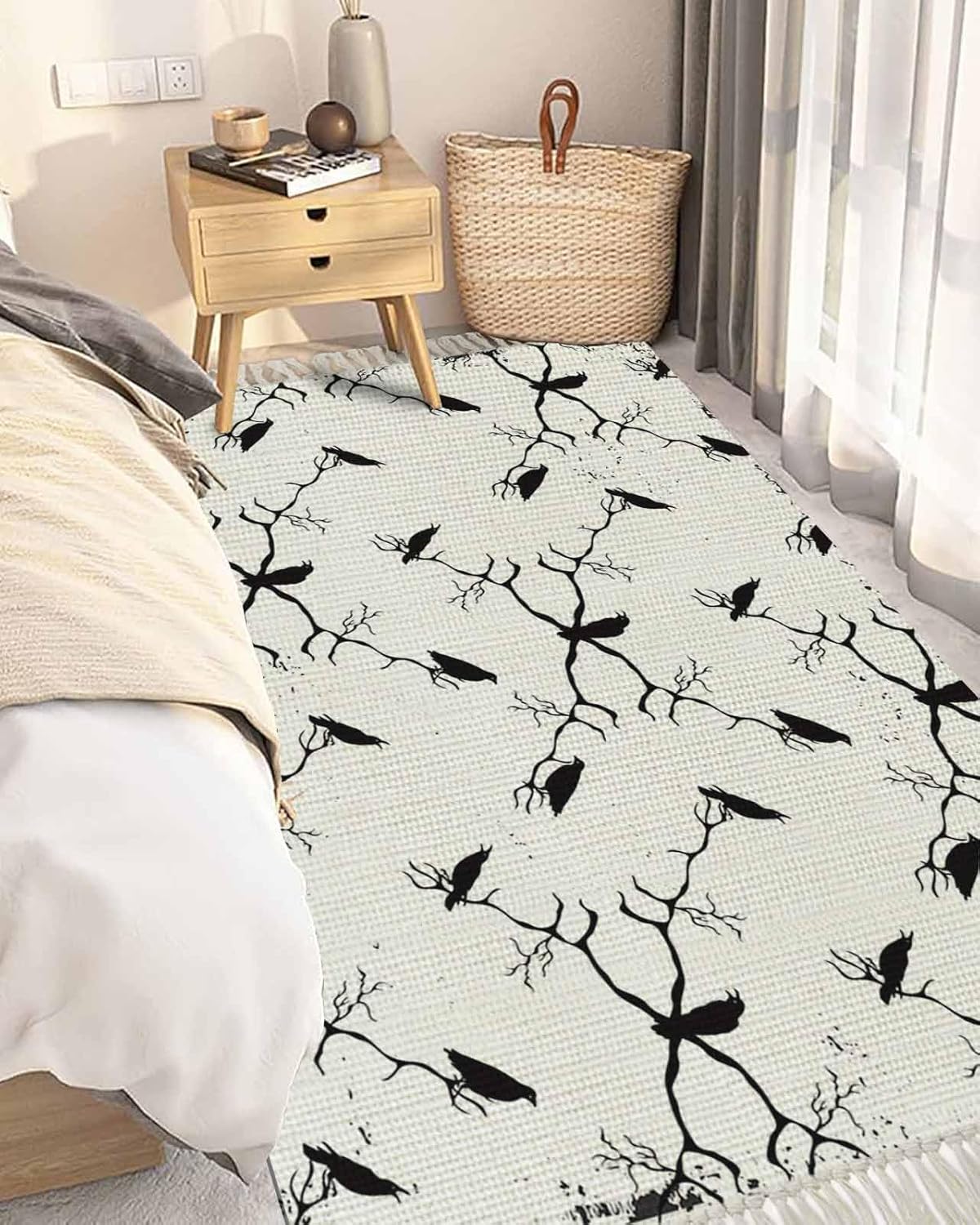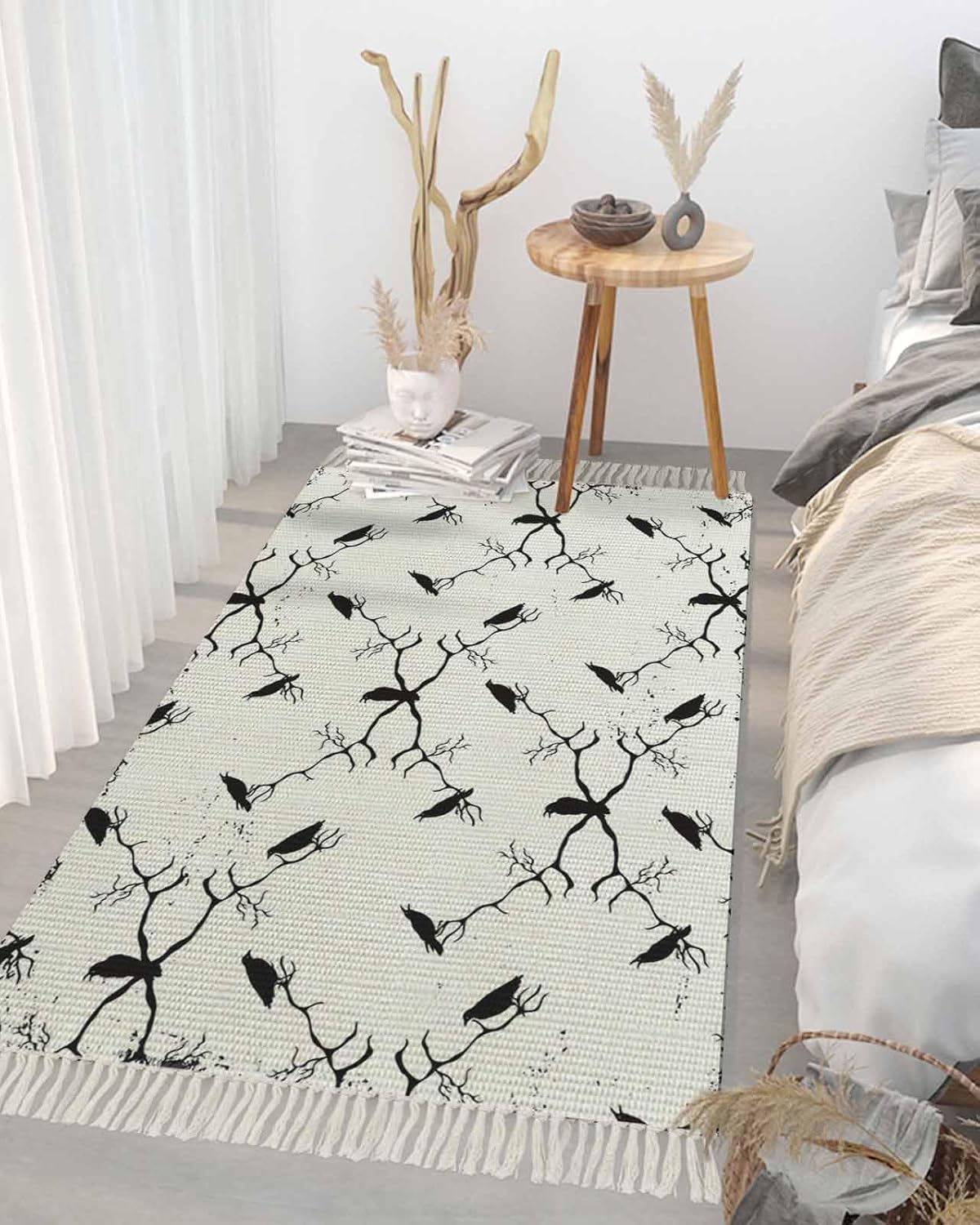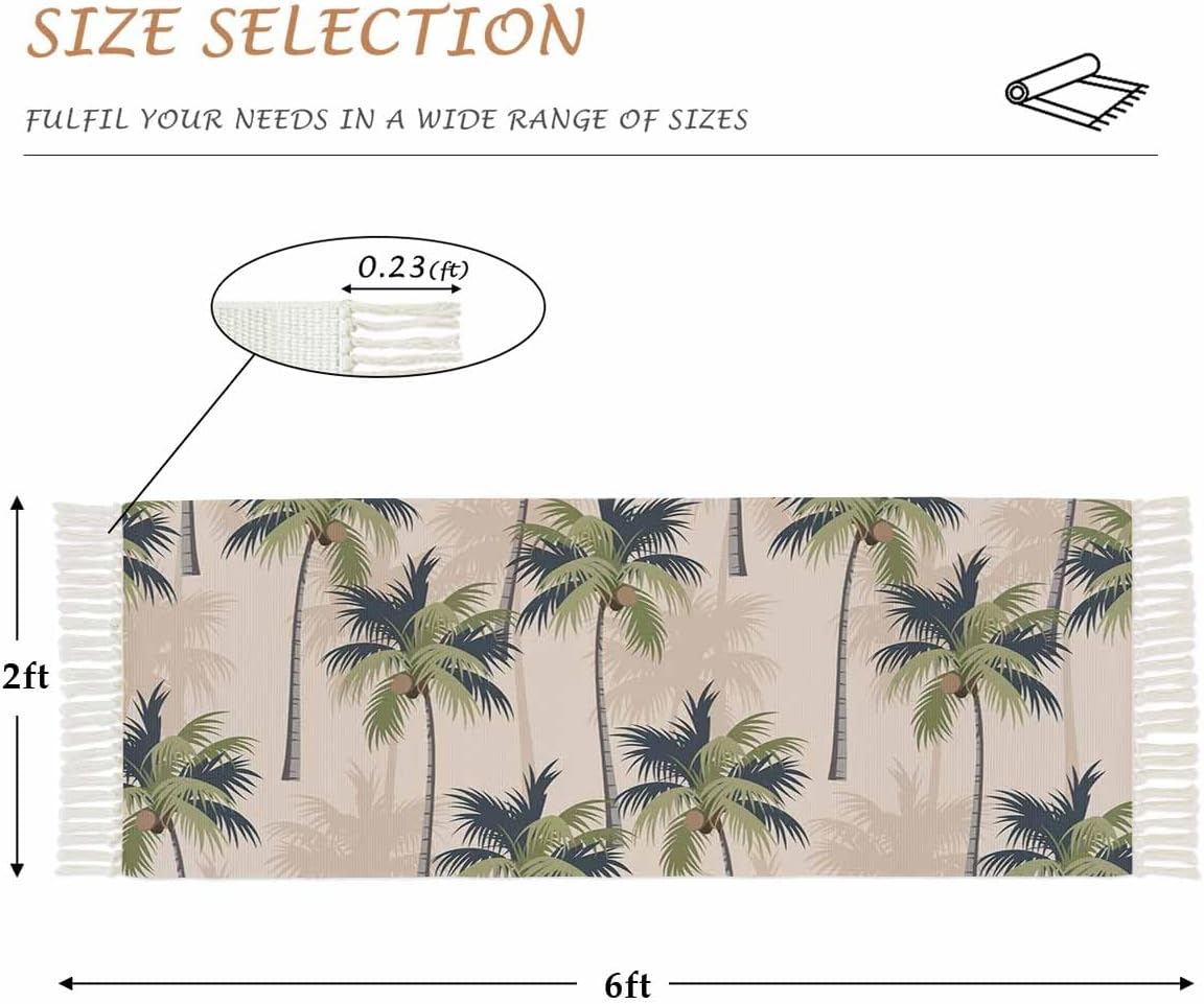 Material: Crafted from polyester-cotton, our comfortable floor mat combines the strength and resilience of polyester with the softness of cotton. Available Sizes: 2x3 Feet: Small Decorative Rug - Perfect for entryway or as a decorative accent. 2x4 Feet: Hallway Runner Rug - Suitable as a hallway rug, laundry rug or bedside rug. 2x5 Feet: Entryway Rug - Add a touch of elegance to entryways or as a runner in larger room. 2x6 Feet: Living Room Rug - Suitable for larger entryway, kitchen or under table. 3x5 Feet: Versatile Living Rug - Versatile size for living room, dining room or bedroom. 4x6 Feet: Large Area Rug - Perfect for spacious living rooms, family rooms or under dining table. Product Highlights: Exquisite Tassels: This washable runner rug features woven tassel that outlines the edges, giving it a sophisticated look. Durability Meets Comfort: The polyester-cotton blend ensures your runner carpet withstands daily wear and tear while maintaining a soft, cozy feel. Folded Rug: The runner bath rugs can be folded, easy to store. Easy Maintenance: Our rug runner is easy to clean, keeping your carpet for hallway looking fresh and new for longer. Versatile Design: Suitable for a wide range of indoor styles, from modern to traditional, adding a touch of elegance to any decor. Care Instruction & Notes: To maintain the beauty of your bedroom runner rug, vacuum and clean regularly as needed. Avoid using bleach when cleaning. Do not use high heat when ironing or tumble drying. Due to the nature of the tassel, gentle handling is recommended to prevent snag or pull.