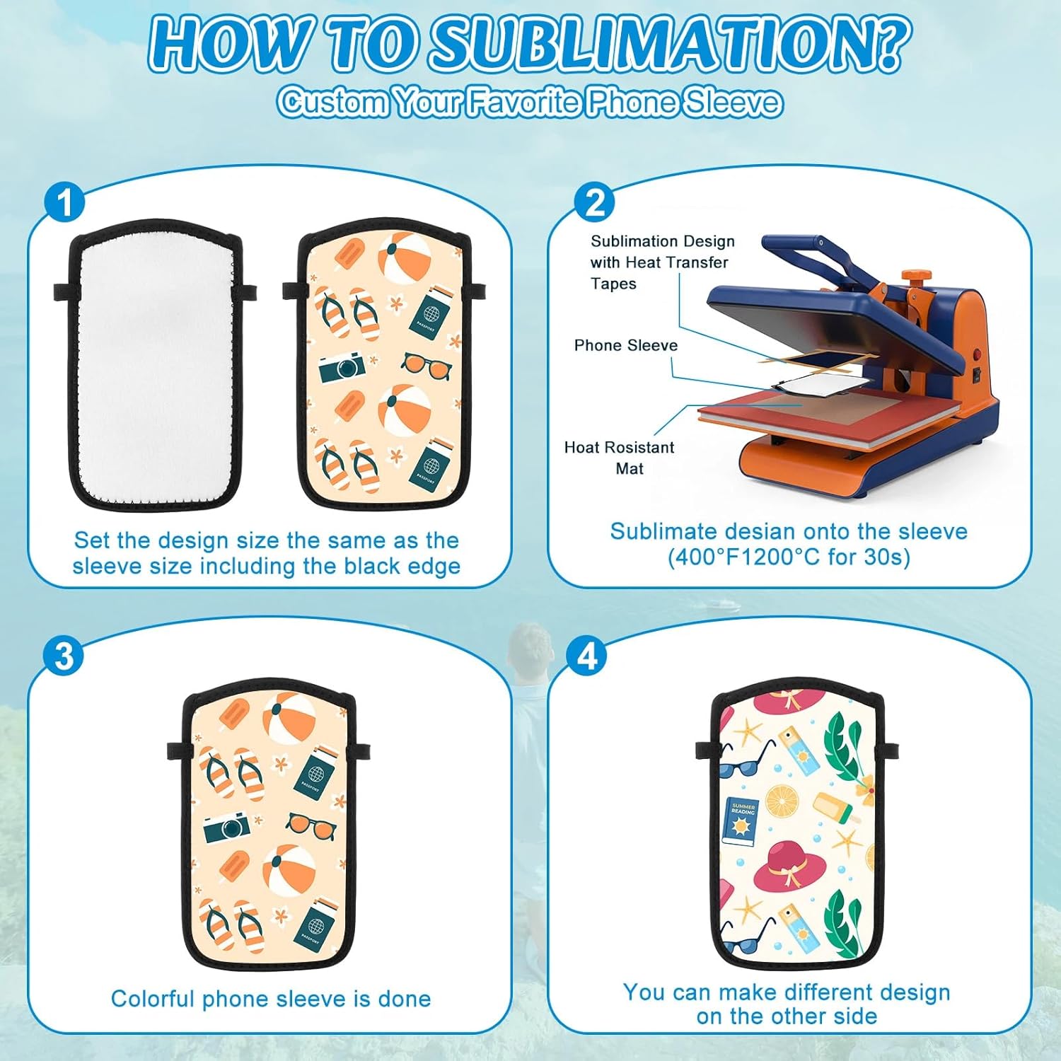 Please note: thermal paper needs to be kept away from heat sources and sunlight, as excessive temperature and strong light may cause the paper to discolor. In addition, the thermal paper cannot be wet, otherwise it may not print Features: Ideal Gift Available in multiple quantities, it is perfect for family trips, small business team building activities, or as a gift for friends and family. Large Capacity Design The large-capacity heat transfer phone case can hold phones of various models and sizes. Specifications: Material: oxford cloth Color: white Size: about 7.88 X 4.73 inch Package includes: 12 X Sublimation Blanks Cell Phone Bag Notes: Manual measurement, please allow slight errors on size. The color may exist a slight difference due to different screen displays.