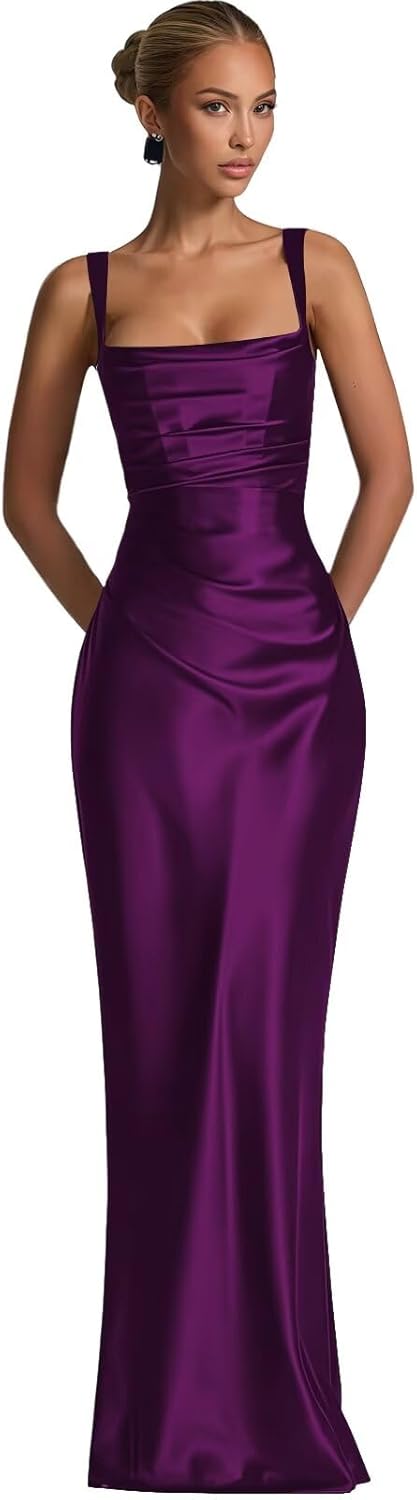 | Embellishment Feature | Floor Length, Mermaid, Satin, Spaghetti Straps, Square Neck |