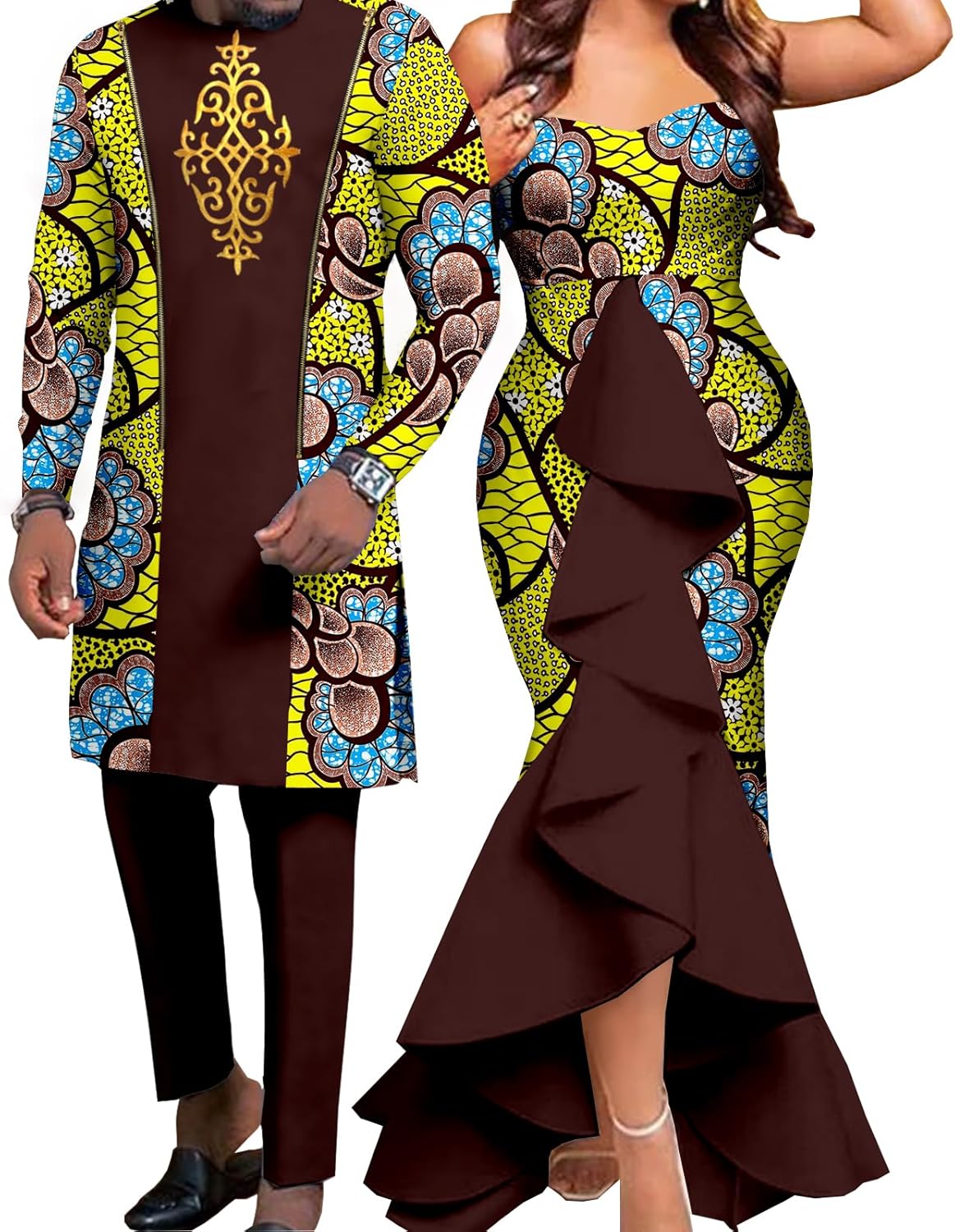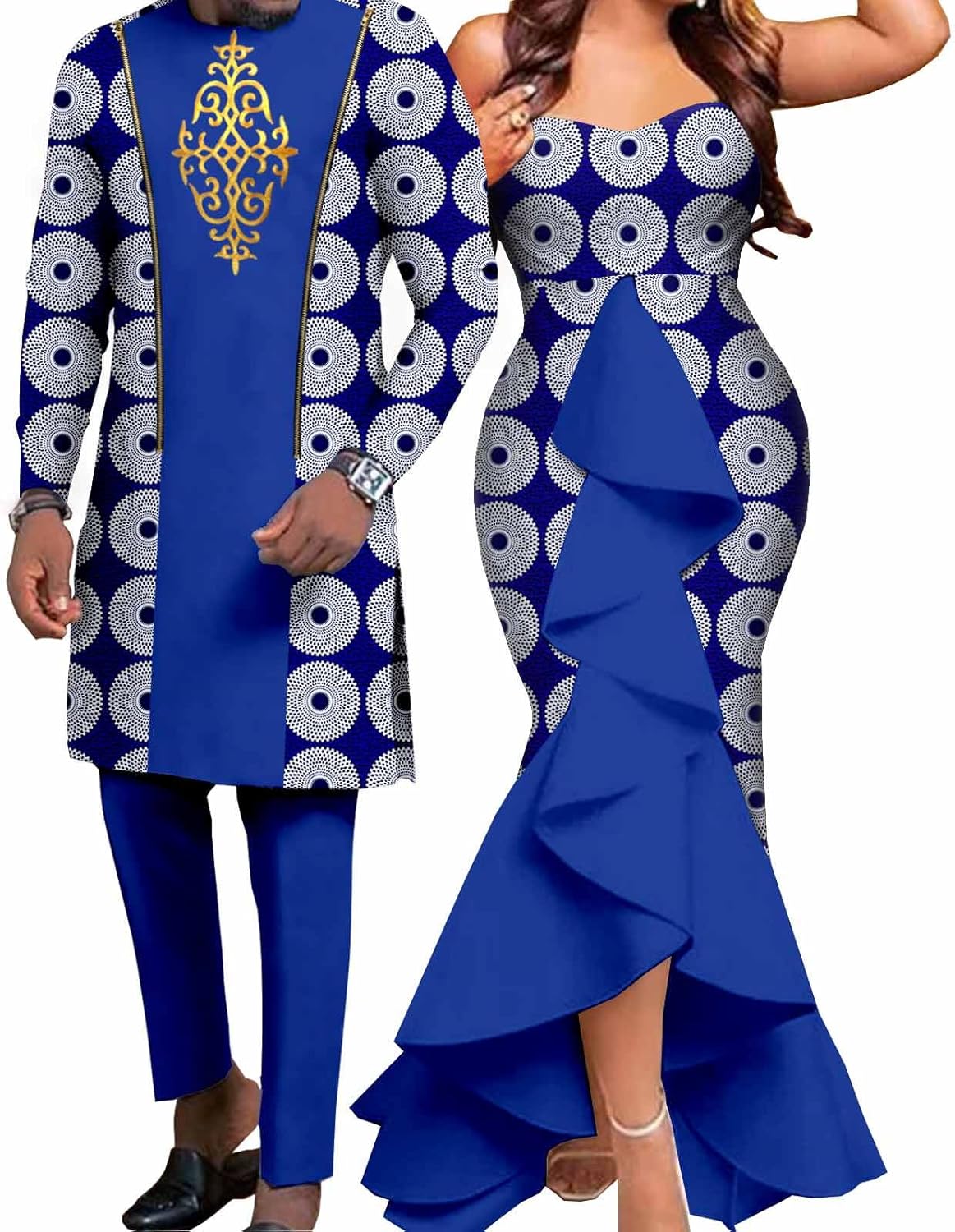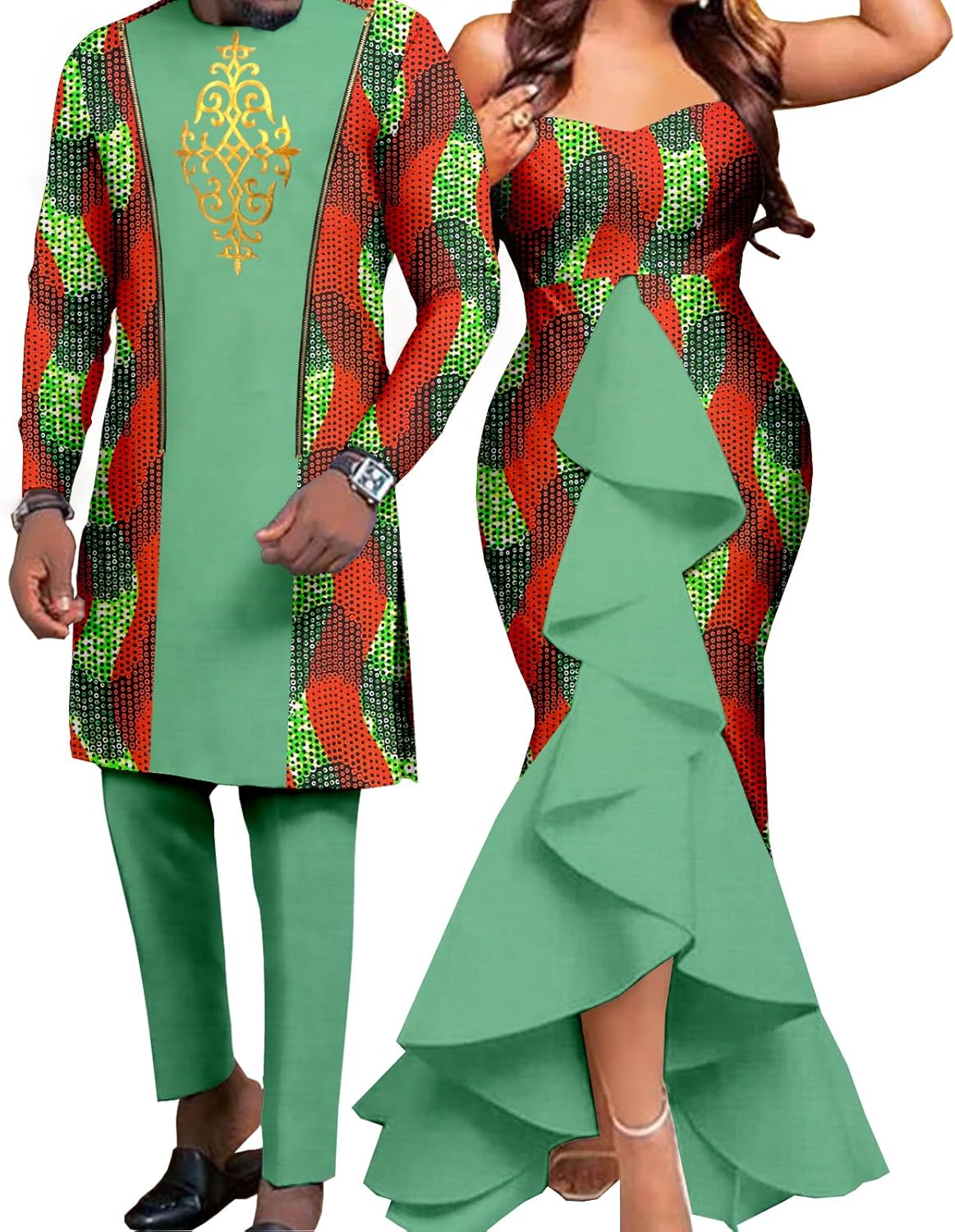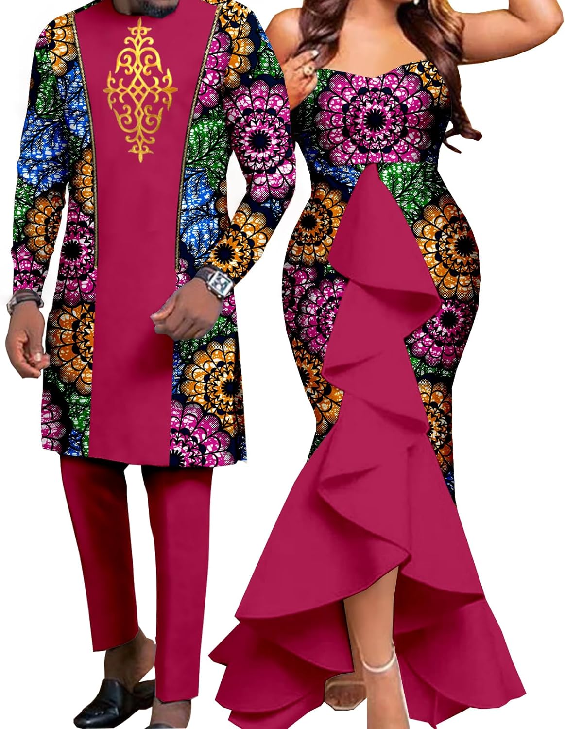 Fabric:●Breathable & Soft fabric●Machine washing & hand washing●Sales Methods:Men's and women's clothing need to be purchased separately●Collar:Slash neck(Women);O-neck(Men)●Women Decoration:Draped,Ruffles,Tierred●Strong durability, resiliency, breathability and shape retentionOriginal Design:●Unique design and over years sewing skills reflect the remakerable temperament. AElaborate Detailing:●Conceal Zipper conforms the right side waist and Elastic waist with adjustable drawstring provide comfortable wearing.