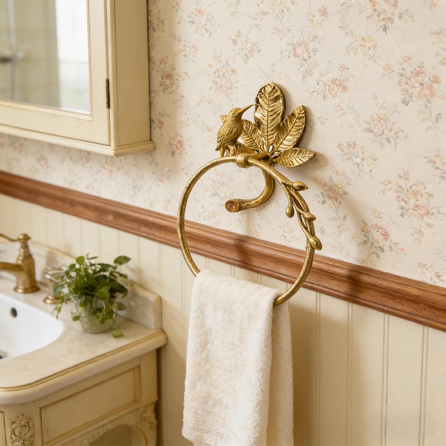 BOOMLATU Solid Brass Bird Towel Ring – Vintage Wall Mounted Hand Towel Holder Feature: Bring timeless elegance into your bathroom with this Solid Brass Bird Towel Ring. Inspired by vintage European décor, this decorative towel holder features a finely sculpted bird resting on botanical leaves, creating a charming focal point for any wall. Made from 100% solid brass, this towel ring offers exceptional durability, corrosion resistance, and a luxurious weight you can feel. Unlike lightweight alloy or zinc hooks, it will not warp or rust, even in humid bathroom environments. Perfect for bathrooms, powder rooms, guest rooms, kitchens, or vanity areas, this bird towel ring blends seamlessly with farmhouse, vintage, shabby chic, and classic interior styles. Whether you’re upgrading your home décor or searching for a thoughtful housewarming or wedding gift, this solid brass towel ring delivers both beauty and function in one elegant accessory. Specification: Type: Wall Mount Material: Solid Brass Dimension:A-7.9 x 2.4 x 10.6 inches/20x 6x27cm B-8.6 x 2.7 x 8.2 inches/22x 7x21cm Package includes: 1 PC x Gold Toilet Paper Roll Holder 1 Set Install Hardware Note: Due to different monitors, the actual color of the item may be slightly different from the picture displayed on the website. The size is manually measured, so please allow a slight deviation within 0.5 inches. As it is a handmade product, some minor flaws are normal designs. This should be known in advance. If the product fails to satisfy you for any reason, please contact us in time and we will provide you with 100% high- quality after-sales service.