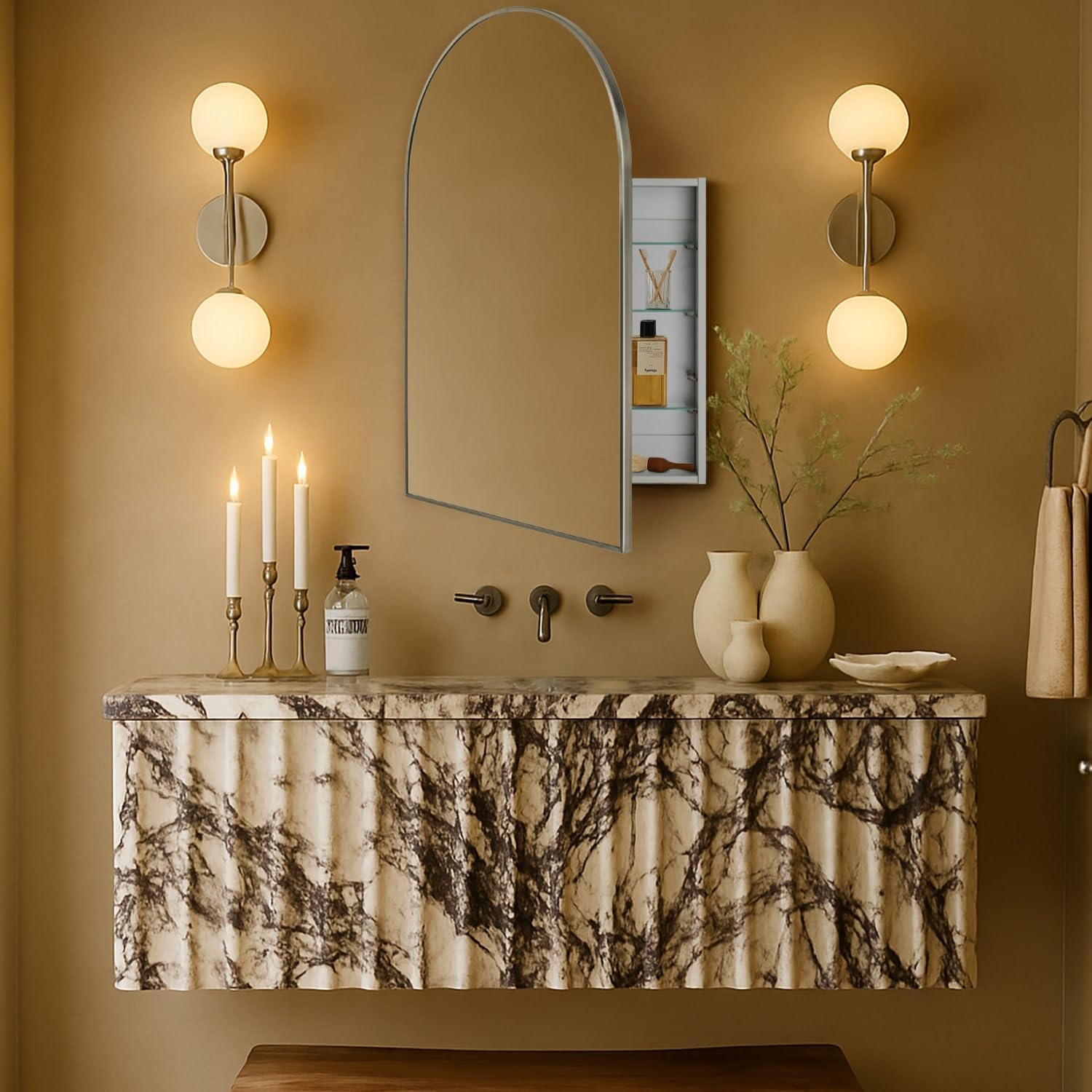 | Assembly Instructions Description | This bathroom medicine cabinet will be delivered fully assembled, customers only need to set the 2 adjustable glass shelves into the cabinet |