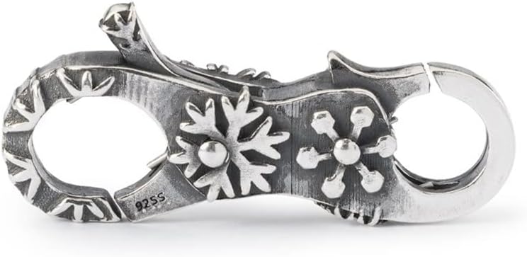 The Sterling Silver 925 Stay Together Clasp from Trollbeads is a delicate and charming accessory, perfect for the winter season. Featuring a hexagonal design with intricately detailed snowflakes, this clasp is designed by Sren Nielsen and is part of the Holiday collection. Made of fine silver and weighing 3.57 grams, this clasp is suitable for both unisex and is intended for jewelry making, with attachment options including Silver Bracelet or Necklace. Proper care for silver jewelry includes avoiding contact with water, chemicals, and perfumes, and storing the jewelry in a cool, dry place.