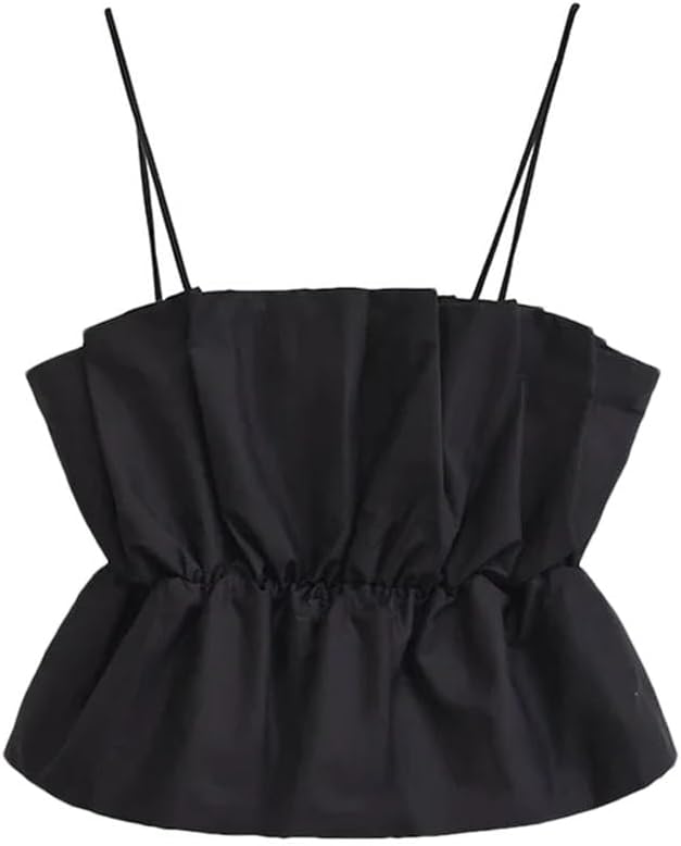 Women’S Casual Pleated Shoulder Backless Sexy Crop Top Commute Minimalist Basic Tank Pullover